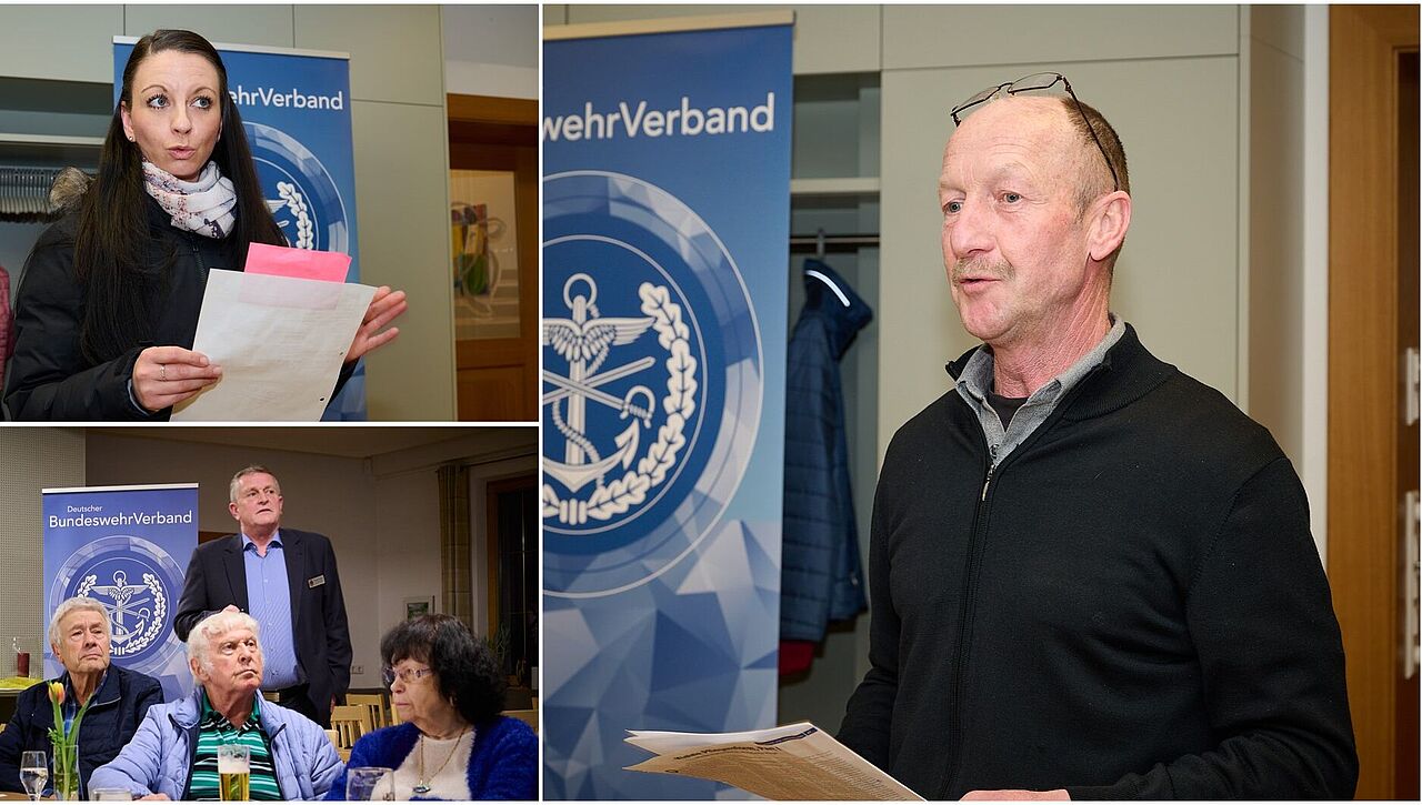 Nach den Rechenschaftsberichten von Vorsitzendem Bernd Uiffinger (r.) und Kassenverwalterin Jennifer Roth (l.o.) und anschließender Wahl informierte Bernhard Hauber (l.u.) über die Pflege-Assistance. Fotocollage: Ingo Kaminsky