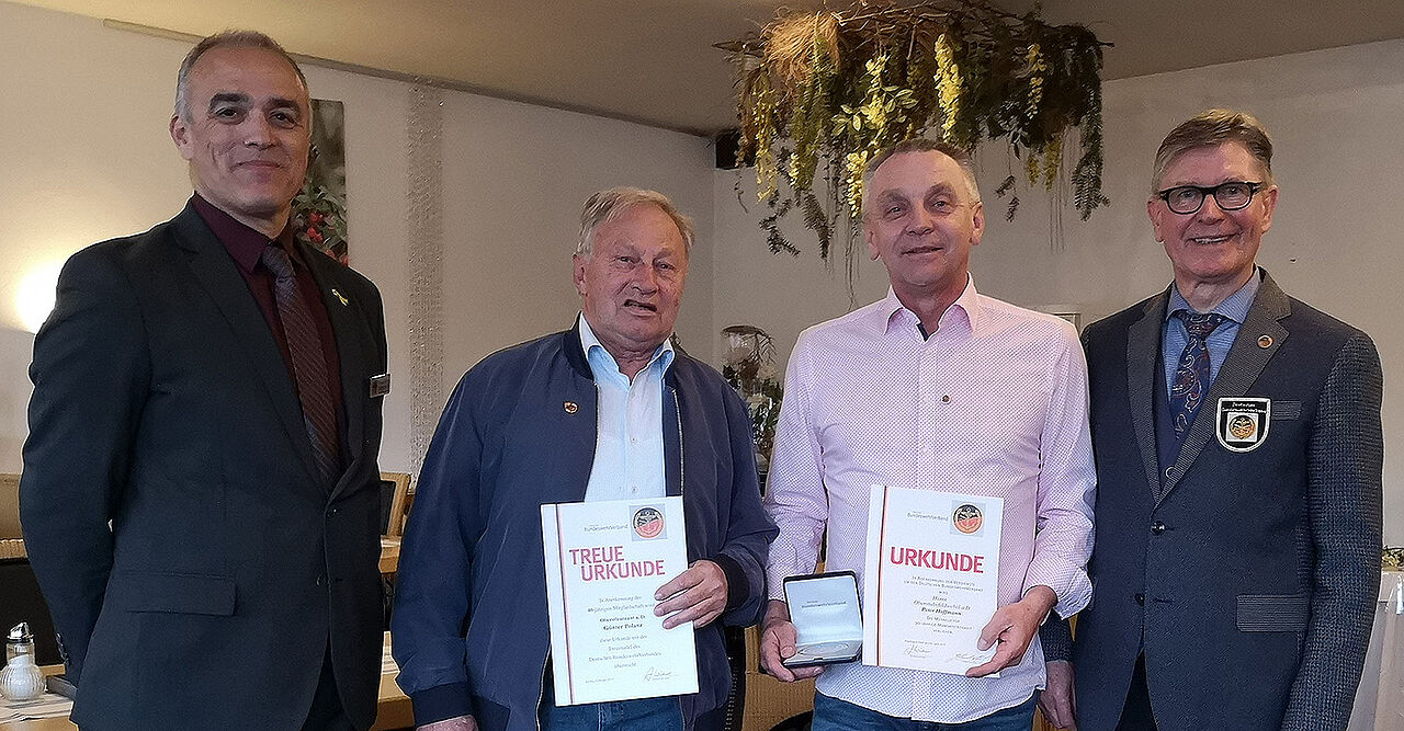 Dank und Anerkennung: Stellvertretender Bundesvorsitzenden Jürgen Görlich (v. l.), Günter Polanz, Peter von Hoffmann und Vorsitzender Erwin Vohrer. Foto: Winfried Riedinger