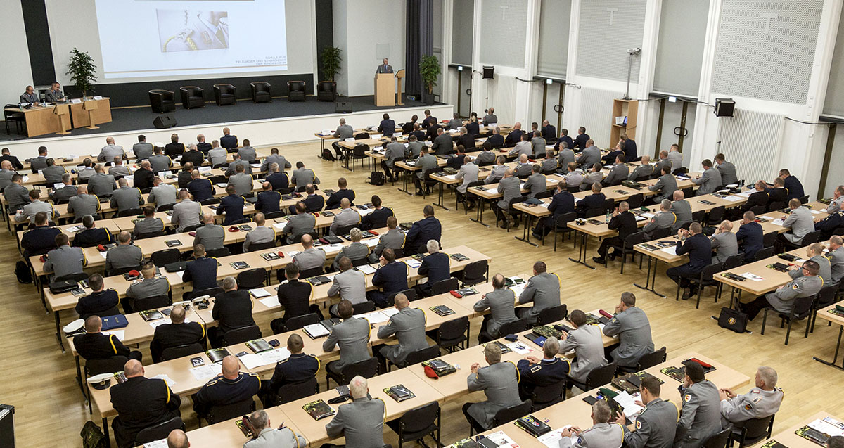 Der DBwV führt mit diesen Kameradinnen und Kameraden jährlich eine Reihe von Tagungen auf Landesebene durch. Dort wird immer Klartext gesprochen, vor allem, wenn es um hohle materielle und personelle Strukturen oder um Lücken im staatlichen Netz der Fürsorge geht. Das galt auch für die diesjährige Tagung: Neben umfassenden Informationen aus dem Bundesamt für Personalmanagement und dem BMVg gab es wieder reichlich Raum für den knackigen Austausch. Diesmal unter anderem mit den Inspekteuren aller militärischer Organisationsbereiche und ihren Vertretern. Die Themen reichten dabei von Arbeitszeit über Ausrüstungsmängel bis hin zum Agieren in der Flüchtlingskrise. Auch der Bundesvorsitzende Oberstleutnant André Wüstner trug aus Sicht des DBwV zur Lage der Bundeswehr vor und knüpfte an seinen Vortrag im vergangenen Jahr an.