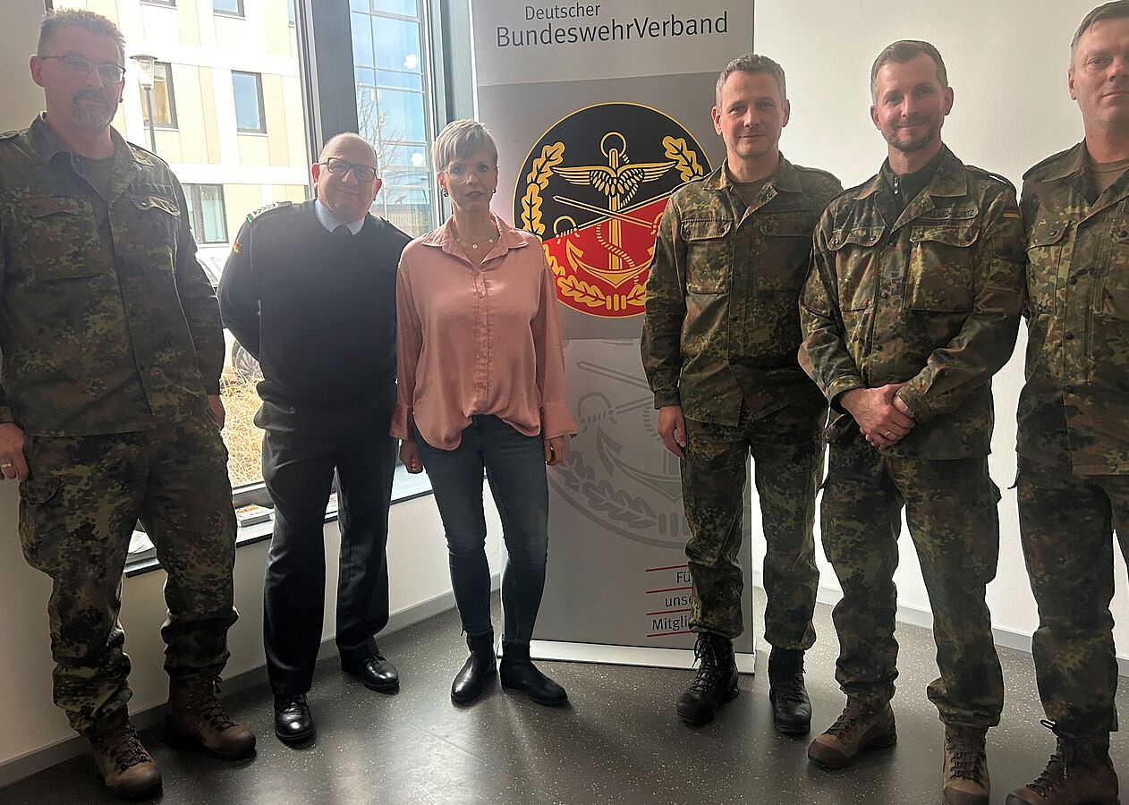 Der stellvertretende Landesvorsitzende, Hauptmann Alexander Dreiser (3. vr) bei seinem Besuch im Karrierecenter der Bundeswehr in Erfurt. Foto: Alexander Dreiser