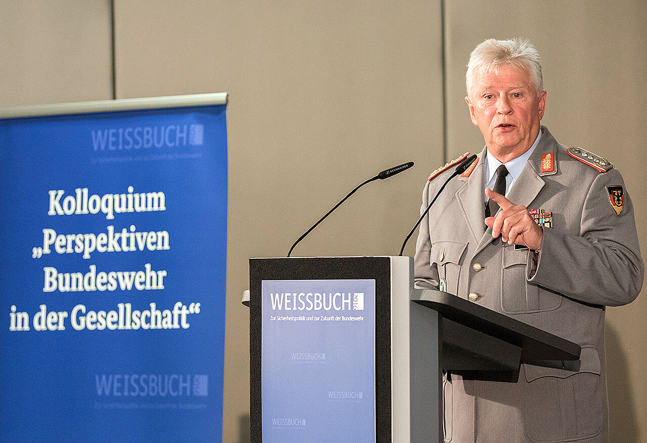 Der Generalinspekteur brachte es auf den Punkt: General Volker Wieker sagte in seiner Rede zum Weißbuch-Kolloquium „Perspektiven der Bundeswehr in der Gesellschaft“, es gehe nicht um Integration in die Gesellschaft, „denn da kommen wir alle her, sondern es geht um Anerkennung.“ Damit skizzierte der Generalinspekteur das Verhältnis von Streitkräften und Bevölkerung. Und es gehe nun darum, Verbündete und Solidarität in der Gesellschaft zu finden. Also unter denen, „deren Recht und Freiheit zu verteidigen, wir alle geschworen haben.“