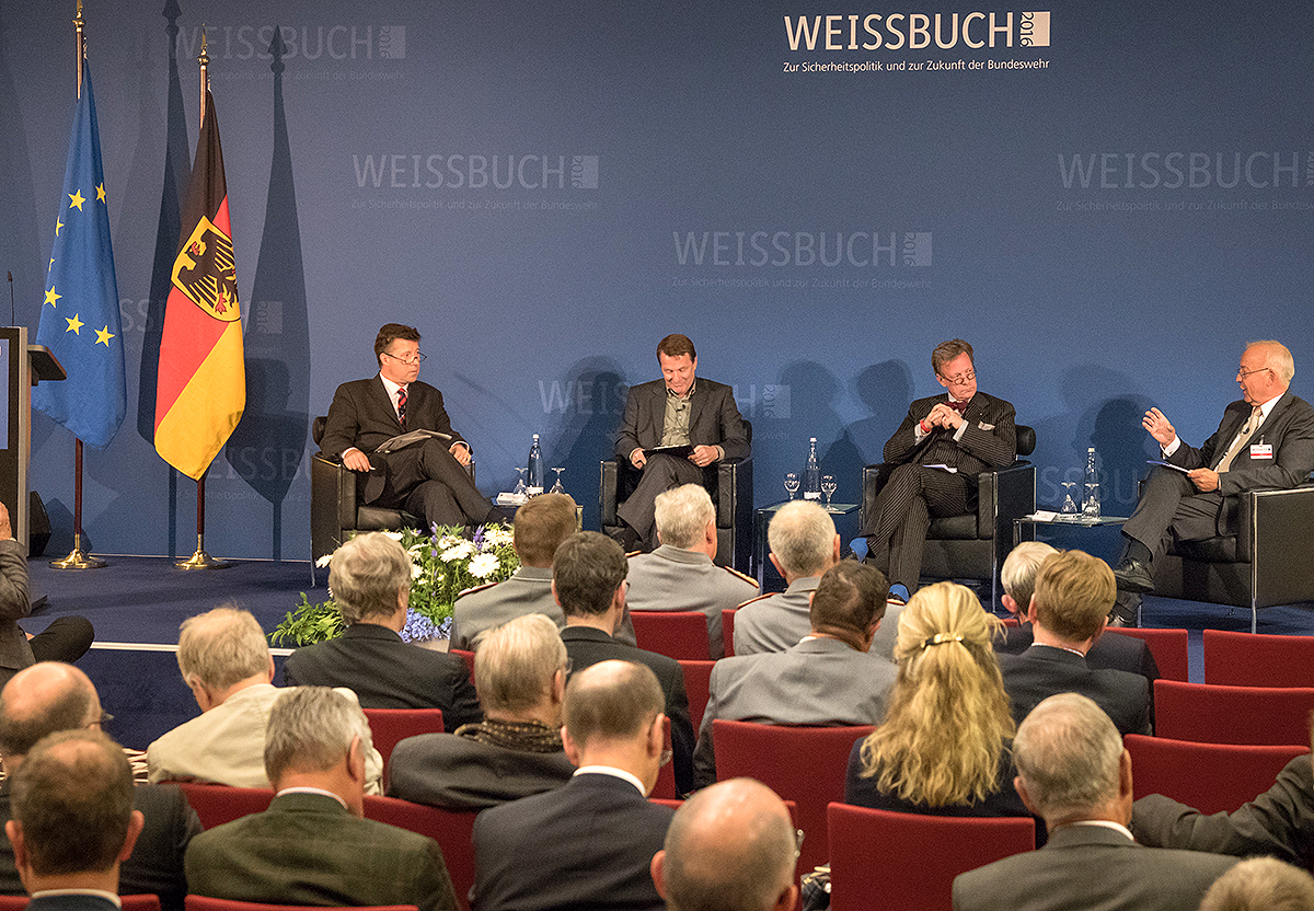 Das Kolloquium war der öffentliche Teil, der an den nicht-öffentlichen Experten-Workshop anknüpfte. Beides ist Teil der sogenannten Partizipationsphase zum Weißbuch 2016, in der möglichst viele Fachleute disziplinübergreifend miteinander debattieren. Es trafen also ehemalige Bundestagsabgeordnete wie Jörn Thießen, jetzt Fachbereichsleiter an der Führungsakademie der Bundeswehr, auf Historiker wie Klaus Naumann vom Hamburger Institut für Sozialforschung oder auf vormalige Generale wie Generalleutnant a.D. Rainer Glatz, den langjährigen Befehlshaber des Einsatzführungskommandos.