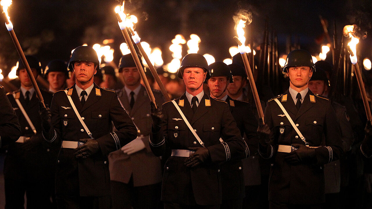 Eine Veranstaltung vor dem Berliner Reichstagsgebäude werde von der Öffentlichkeit wahrgenommen. „Wir sollten darauf nicht etwa verzichten, weil es auch Proteste geben könnte“, sagte sie. Der Große Zapfenstreich ist das höchste militärische Zeremoniell der deutschen Streitkräfte und folgt einer festgelegten Abfolge musikalischer Elemente und militärischer Zeremonie mit Fackelträgern.