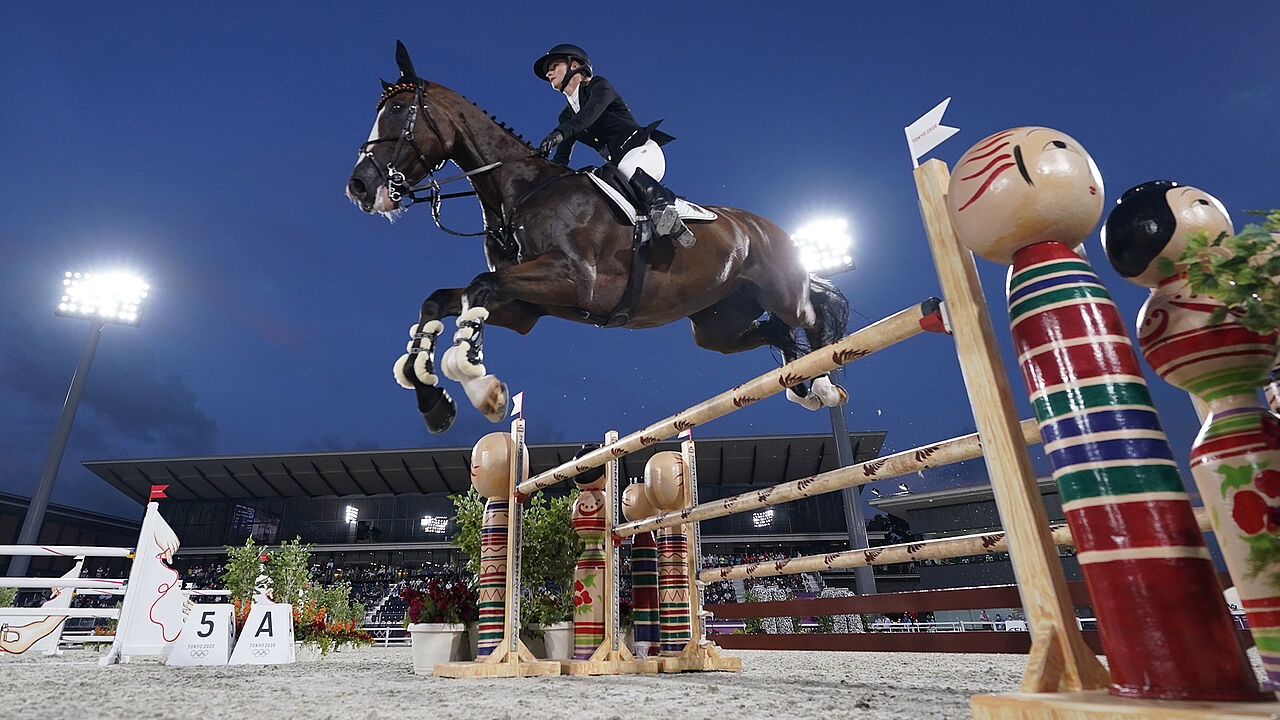 Auf ihrer Stute Amande de B'Neville ritt Hauptgerfreiter Julia Krajewski in Tokio zu Gold. Foto: picture alliance / ASSOCIATED PRESS | Carolyn Kaster
