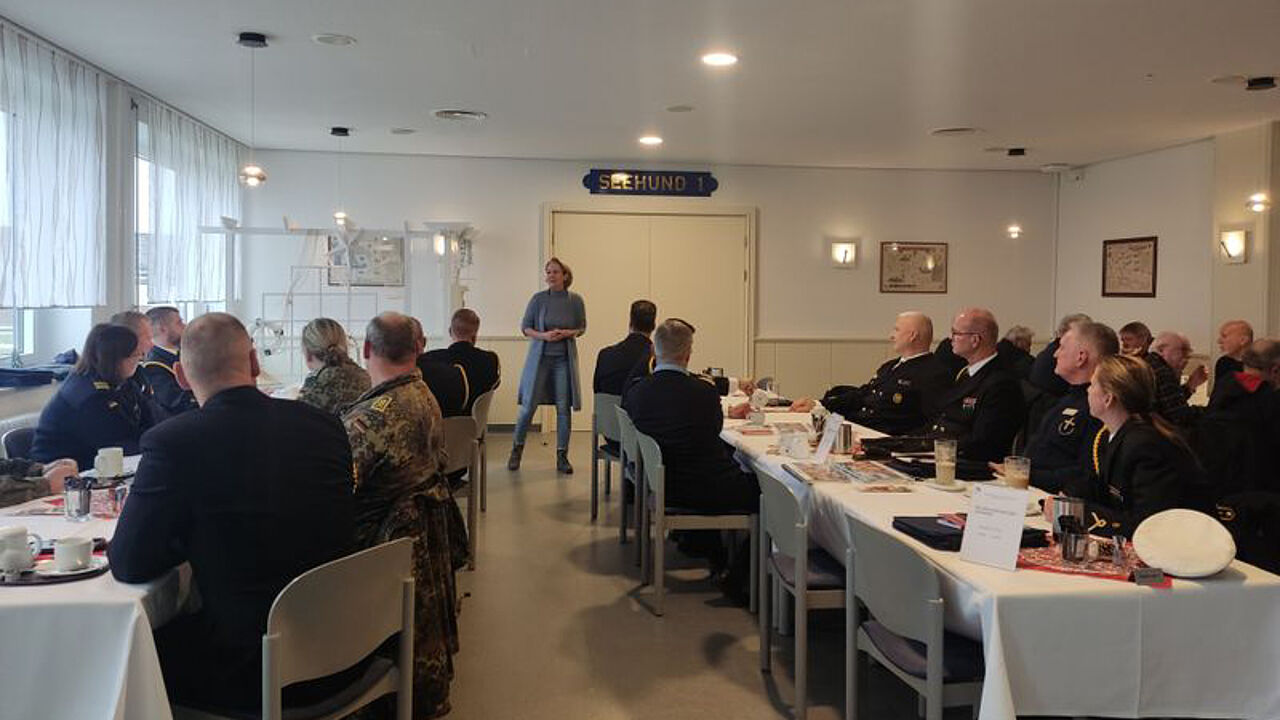 Weidner stellte sich der gemischten Truppe als neue StoKa-Vorsitzende vor und referierte über ihre Vorstellungen zur Mitgliedergewinnung und örtlichen Zusammenarbeit. Danach stellte Struckmeier die Truppenpsychologin der Einsatzflottille 2 vor. Daniela Orttenburger ist seit rund. zwei Jahren im Amt und unter anderem für die Standorte Nordholz und Bremerhaven zuständig, damit für die gesamten Marinekräfte im Bezirk 3. Die Truppenpsychologin berichtete über ihre Arbeit an Land und an Bord, ihre Zusammenarbeit mit Dienststellen des „Psycho-sozialen Netzwerkes“ und natürlich über ihre ersten und sehr positiven Erfahrungen mit der Deutschen Marine.