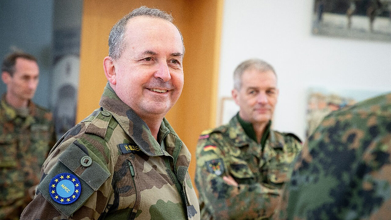 Als Leiter der EU-Ausbildungsmission für die UKR-Streitkräfte untersteht Vizeadmiral Bléjean neben dem POL CAT-C auch das DEU Special Training Command (ST-C). Rechts im Hintergrund: Generalleutnant Andreas Marlow. Foto: PIZ Heer