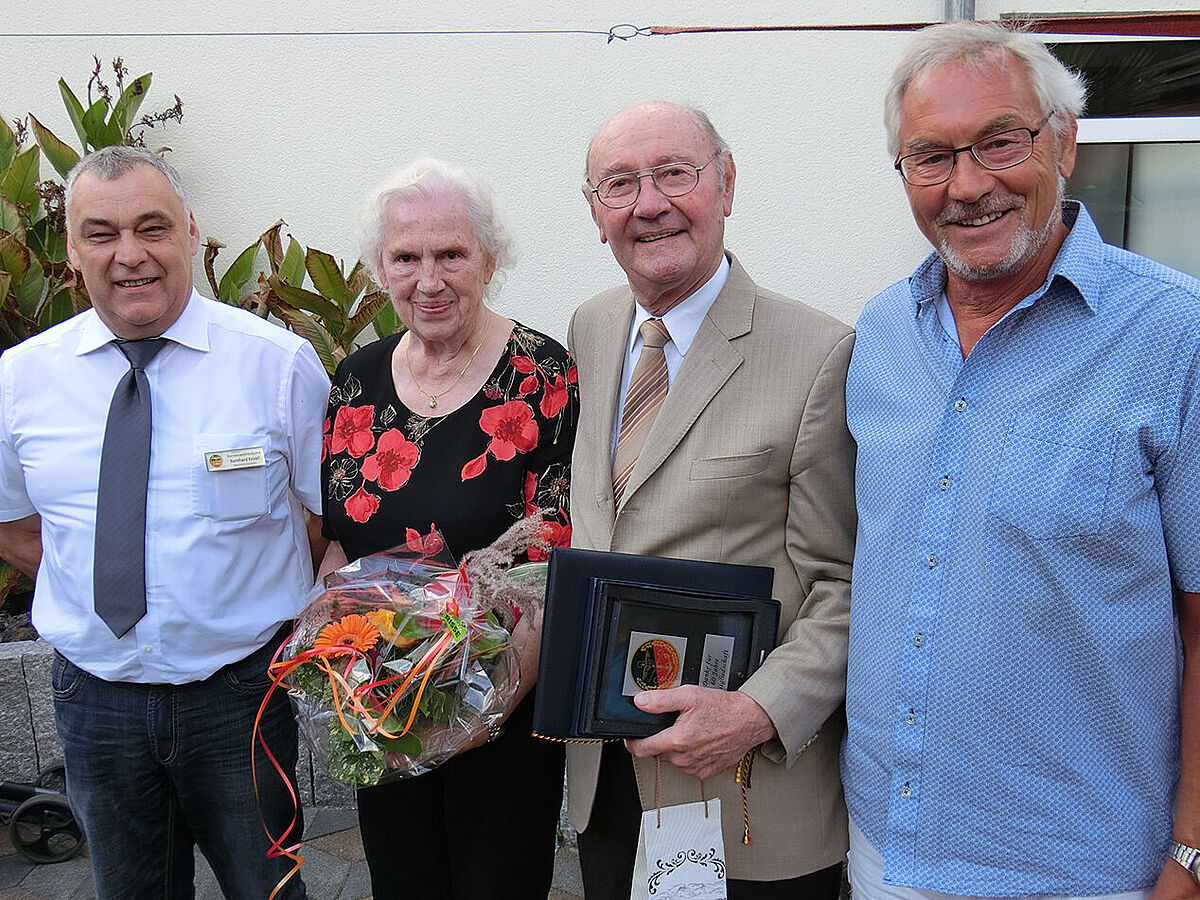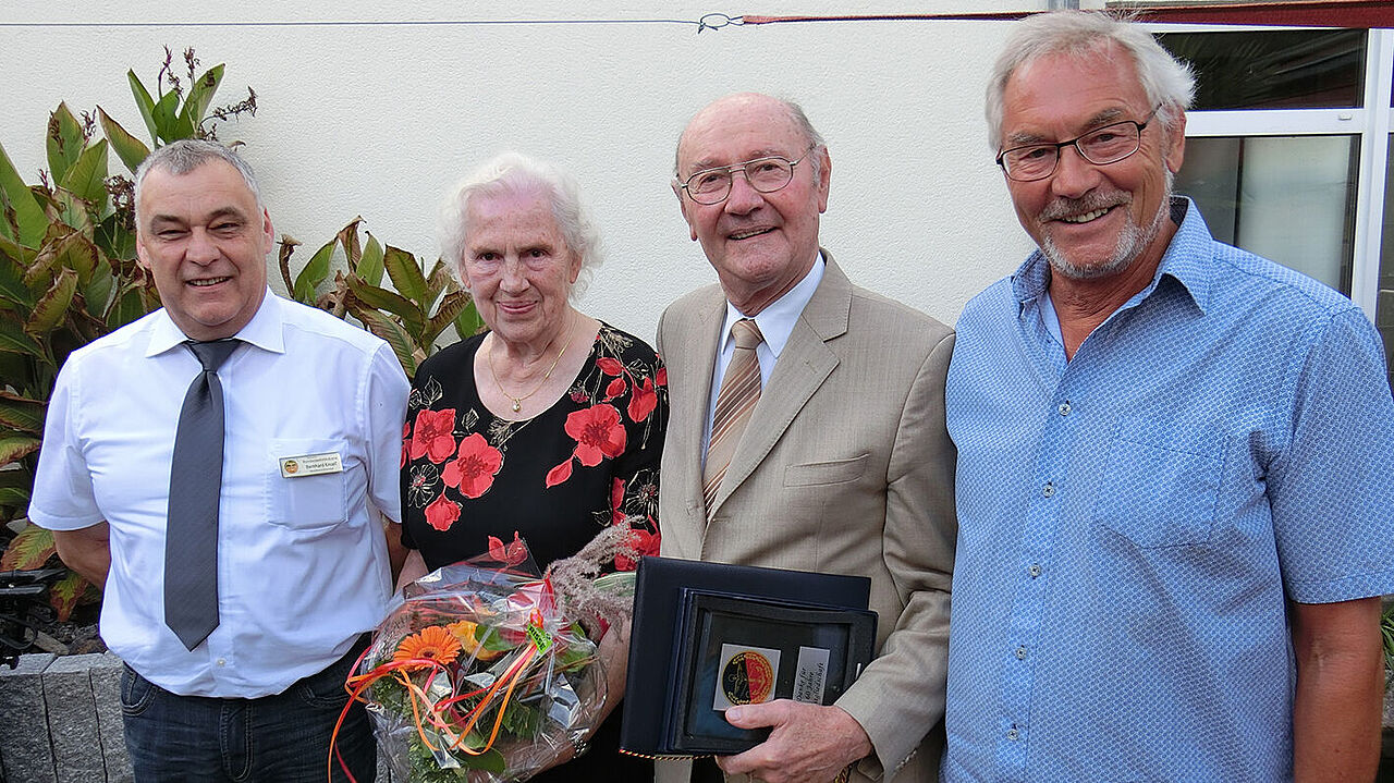 Erstmals wurden in Germersheim 60 Jahre Mitgliedschaft gefeiert: Hauptmann a.D. Gerhard Pfeifer (3. v.l.) mit Ehefrau. (Foto: Hauptmann a.D. Roland Rauh)
