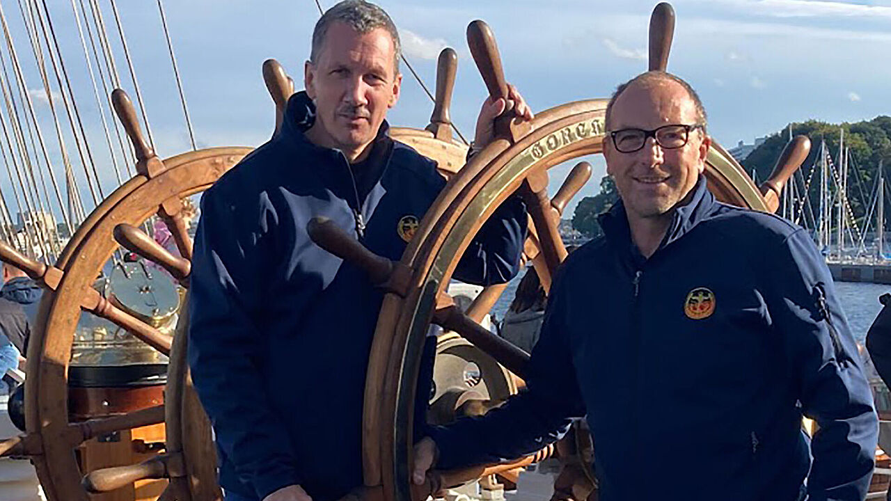v.l.: Barenscheer und Sommer an Bord der Gorch Fock. Foto: LV Nord