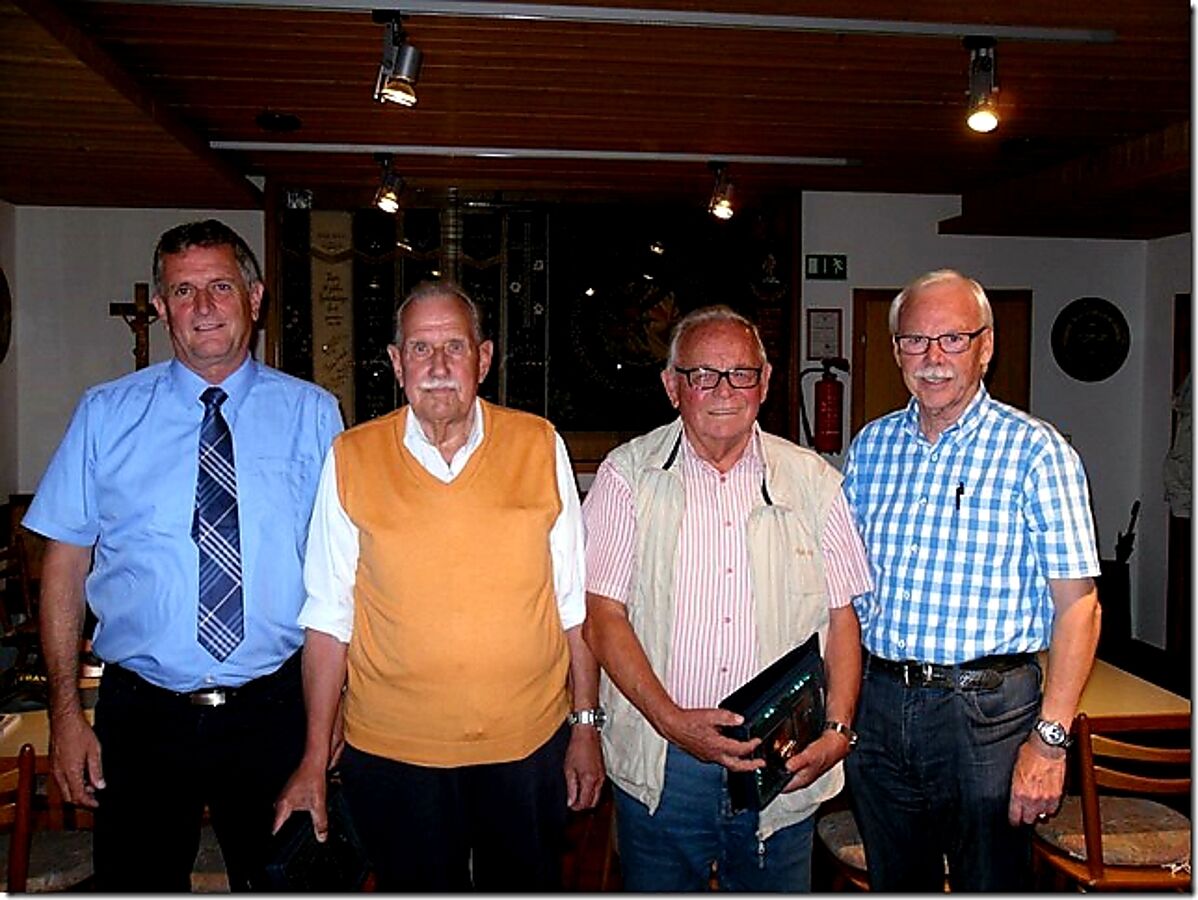 Man sollte es in diesem Jahr bei weitverbreiteten schönsten Sommerwetter nicht für möglich halten: Das traditionelle Grillfest der selbständigen Kameradschaft ERH musste vom schönen Biergarten wegen schlechten Wetters in den Innenraum vom Gasthaus Karl zu Hamberg verlegt werden. Das tat dem kameradschaftlichen Zusammensein der 50 Mitglieder und Gäste aber keinen Abbruch. Zunächst freuten sich der Neumarkter Oberfeldwebel d.R. Günter Bredl und der Hemauer Stabsfeldwebel a.D. Adolf Faulhammer über Urkunde und Treuenadel für 60 Jahre Mitgliedschaft im DBwV, überreicht vom Vorsitzenden ERH im Landesverband Süddeutschland, Oberstabsfeldwebel a.D. Bernhard Hauber, und dem Vorsitzenden der Kameradschaft ERH, Stabsfeldwebel a.D. Norbert Frühwald. Neben deftigen Speisen vom Grill und kühlen Getränken waren die Teilnehmer beim Quizspiel gefordert, dass zum wiederholten Male mit den meisten richtigen Antworten Oberstabsfeldwebel a.D. Hubert Lammert gewann. Da es bei diesem Wettbewerb keine wirklichen Verlierer gab, wurden weitere Sachpreise an viele Nächstplatzierte vergeben.