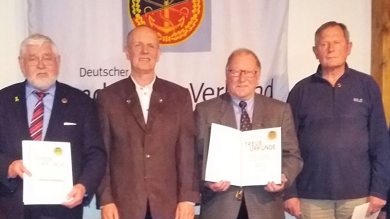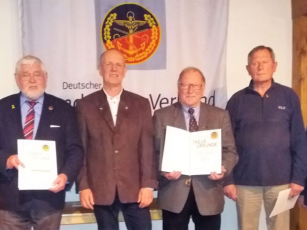 Im Rahmen der Veranstaltung konnten Mitglieder für langjährige Zugehörigkeit geehrt werden: Die Stabsfeldwebel a.D. Helmut Osterwind und Peter Hrach erhielten Urkunde und Nadel für 40-jährige Zugehörigkeit zum Deutschen BundeswehrVerband und Stabsfeldwebel a.D. Rainer Werner für 50 Jahre Mitgliedschaft. Eine ganz besondere Ehrung erfuhr der Vorsitzende der KERH Hammelburg, Klaus Voshage, für seine über Jahre engagierte Verbandsarbeit mit der Verleihung der „Verdienstnadel in Gold“ des Deutschen BundeswehrVerbandes.