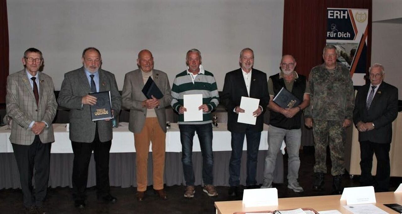 Die Veranstaltung bot den Rahmen für die Ehrung treuer Mitglieder: Oberstleutnant a.D. Eckard Gillmann (60 Jahre), Oberstleutnant a.D. Reinhard Haarstick und Oberstabsfeldwebel a.D. Klaus Wetzig (50), Oberstabsfeldwebel a.D. Andreas Kirsch (40) und Stabsfeldwebel a.D. Thomas Vulp (25 Jahre).In seinem Bericht gab der Vorsitzende im Wesentlichen einen kurzen Rückblick auf das laufende Jahr und einen Ausblick auf die Vorhaben 2024. Als letzte Veranstaltung 2023 findet am 14. Dezember um 15 Uhr der Adventskaffee in der Oase statt.