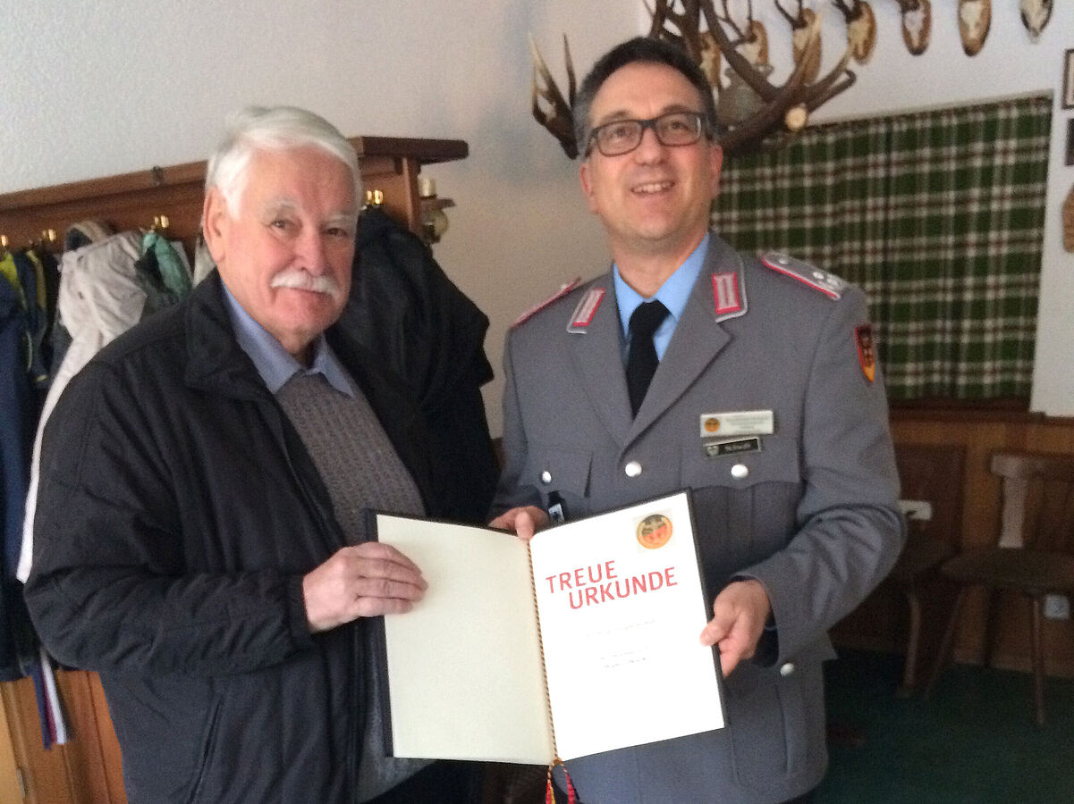 Eine besondere Ehrung nahmen der Vorsitzende der KERH Hunsrück, Oberstleutnant a.D. Franz Treib und Oberstleutnant Michael Schwab, Vorsitzender Bezirk Rheinland, unlängst vor. Mit Oberstleutnant a.D. Walter Desch hat die Kameradschaft einen überregional bekannten Sportfunktionär in ihren Reihen. Desch ist seit 2001 Nachfolger von Theo Zwanziger als Präsident des Fußballverbandes Rheinland und Vizepräsident des Fußballregionalverbandes Südwest. Der pensionierte Stabsoffizier erhielt für seine nunmehr 50 jährige Treue zum DBwV die Treueurkunde und Nadel.