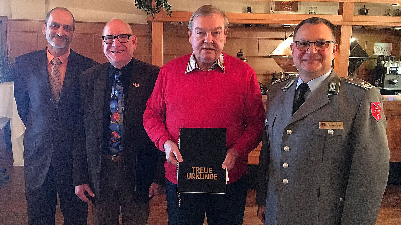 Braunschweig. Die Mitglieder der ERH-Kameradschaft Braunschweig trafen sich Anfang Dezember zum traditionellen Jahresabschluss im Landhaus Moorhütte. Unter den Gästen war der Landesvorsitzende Nord, Oberstleutnant Andreas Brandes. Nach einem Blick auf das zu Ende gehende Jahr und einer Vorschau auf die für 2019 geplanten Aktivitäten nahm der Kameradschaftsvorsitzende Oberstabsfeldwebel a.D. Olaf Sebode zusammen mit Brandes Ehrungen vor: Oberstabsfeldwebel a.D. Norbert Detlef Bothe und Stabsfeldwebel a.D. Lothar Holland erhielten die Treueurkunde des Bundesvorsitzenden für 50-jährige Mitgliedschaft im Deutschen Bundeswehrverband.Anschließend hörten die Teilnehmer einen Vortrag des Landesvorsitzenden zu aktuellen Themen und zu den Erfolgen des DBwV. Brandes lobte die Arbeit und das soziale Engagement in der ERH-Kameradschaft Braunschweig, insbesondere den unermüdlichen Einsatz von Oberstabsfeldwebel a.D. Heinz-Peter Scherer. Mit dem anschließenden Weihnachtsessen, Gesprächen in gemütlicher Runde und guten Wünschen zum Weihnachtsfest sowie für das Jahr 2019 fand der Abend seinen Ausklang.