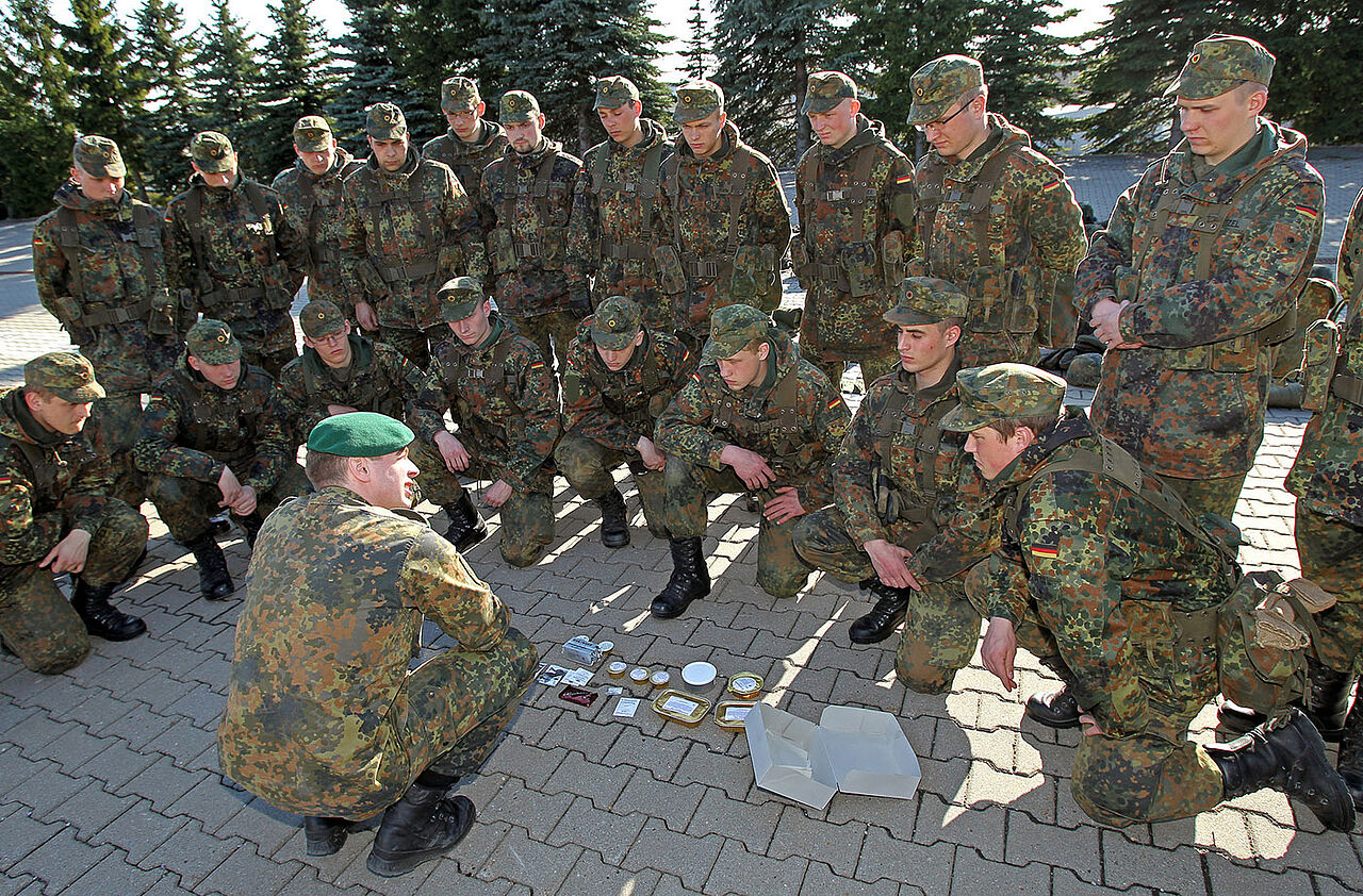 Rekruten bekommen eine Einweisung in den Inhalt einer Einmannpackung. Jetzt werden die Rationen knapp Foto: Bundeswehr/Sebastian Wilke