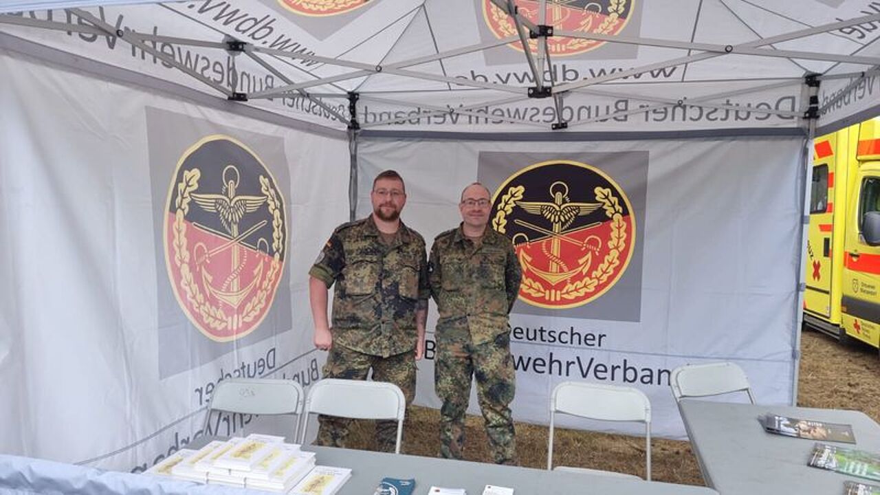 Mitten im Geschehen war der DBwV mit einem Informationsstand der Truppenkameradschaft des Bataillons. Die Vertreter des Verbandes kamen schnell in den Dialog mit Jung und Alt und brachten dabei den Besuchern die Aufgaben des Deutschen BundeswehrVerbandes sowie allgemeine Informationen über die Bundeswehr näher.