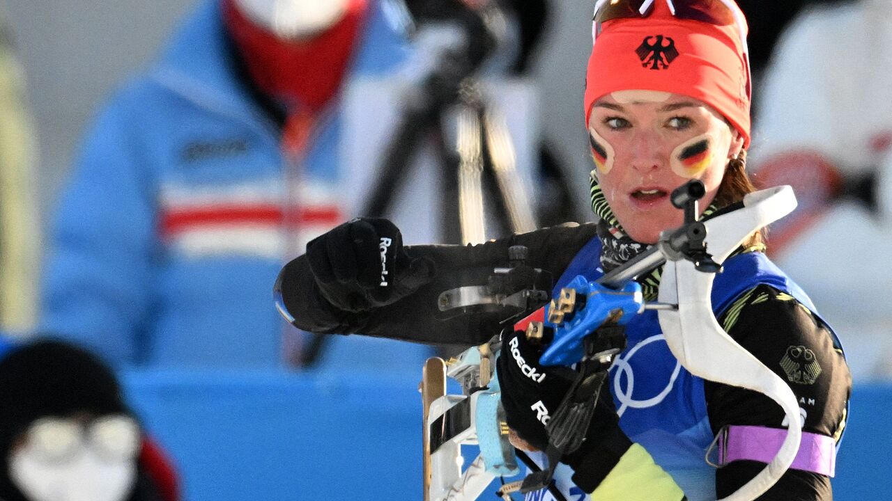 Zielsicher: Hauptfeldwebel Denise Herrmann holte die erste Medaille und das erste Gold für die Sportsoldatinnen und -soldaten in Peking. Foto: Twitter/SKB