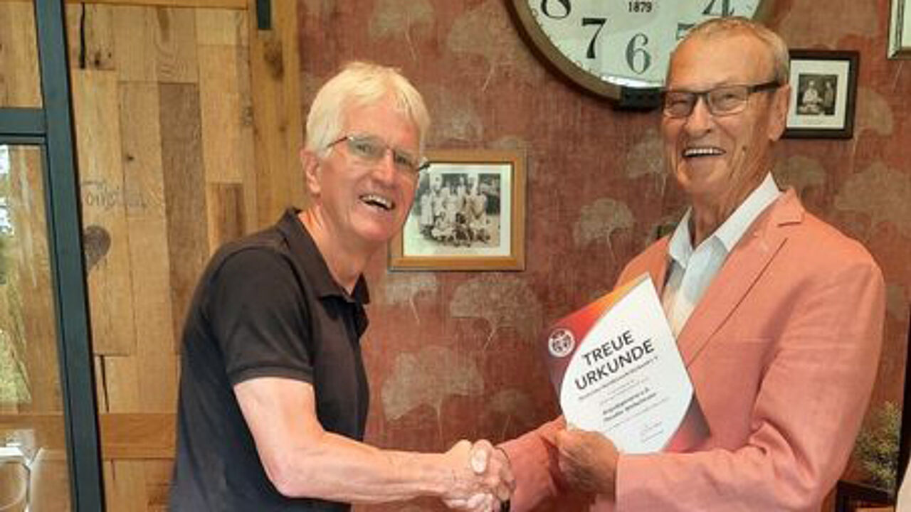 Braunschweig. Brigadegeneral a.D. Theodor Winkelmann hat die Treueurkunde des Bundesvorsitzenden für 50 Jahre Mitgliedschaft im Deutschen Bundeswehrverband erhalten. Die Übergabe nahm der Vorsitzende der selbstständigen ERH-Kameradschaft Braunschweig, Oberstleutnant a.D. Uwe Fenger, im Rahmen eines Kameradschaftstreffens vor.