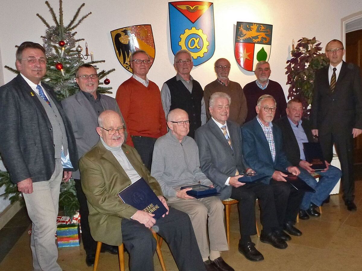 Vor der eigentlichen Adventsfeier bedankten sich beide Vorsitzenden bei den anwesenden langjährigen Mitgliedern des DBwV. Treuenadeln und Urkunden erhielten für 60-jährige Mitgliedschaft die Hauptmänner a.D. Karl-Heinz Starz, Adolf Wittbrodt und Herbert Kammerer sowie Stabsfeldwebel a.D. Helmut Maurer, für 50-jährige Mitgliedschaft die Hautmänner a.D. Peter Schnauffer und Bodo Tröger sowie Stabsfeldwebel a.D. Gerd Zander und Oberfeldwebel d.R. Dietmar Lehmann, für 25-jährige Mitgliedschaft Stabsfeldwebel a.D. Holger Wünschmann,