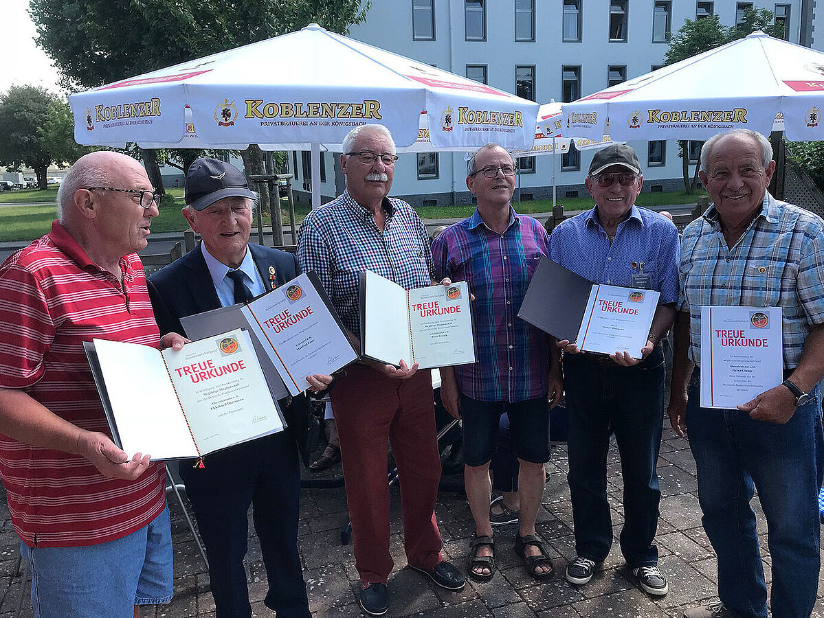 Beim traditionellen jährlichen Grillnachmittag der Kameradschaft Ehemalige, Reservisten, Hinterbliebene (KERH) Koblenz/Lahnstein übergab deren Vorsitzender, Oberstleutnant a.D. Alfred Schmitz, verdienten Mitgliedern die Treuenadel und Urkunde für ihre langjährige Mitgliedschaft im Deutschen BundeswehrVerband. Die Feldwebel d.R. Manfred Esser und Walter Witzmann halten dem DBwV nunmehr seit sechs Jahrzehnten die Treue. Des weiteren wurden geehrt für 50 jährige Mitgliedschaft: Oberstleutnant a.D. Ekkehard Herrmann, Stabsfeldwebel a.D. Peter Petrich sowie für 40 Jahre: Oberstleutnant a.D. Heinz Glump. Mehr als 60 Kameraden und Angehörige bildeten bei dieser Gelegenheit einen würdigen Rahmen und freuten sich mit den ausgezeichneten Kameraden.