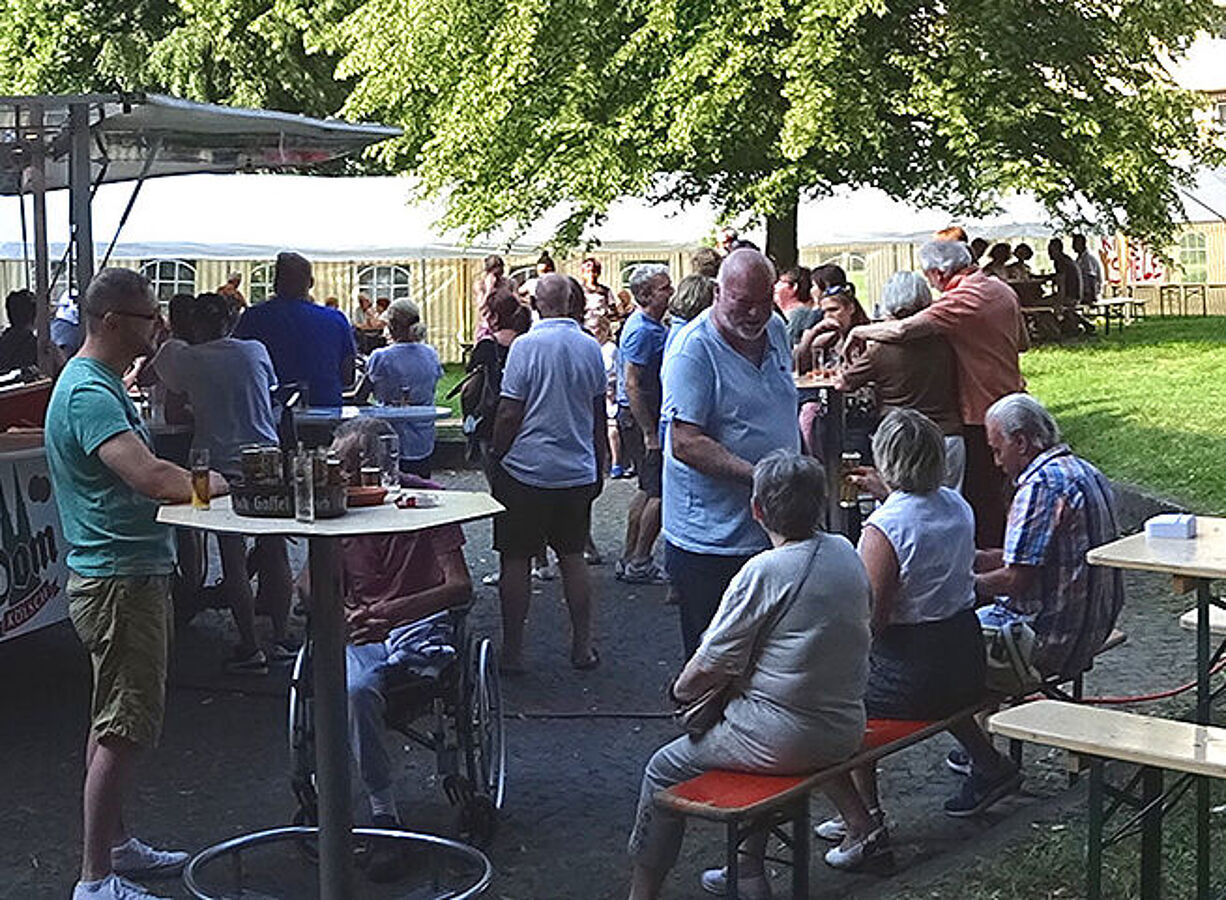 Die Arbeitsgruppe „Wohnungsfürsorge Heidekaul“ der Standortkameradschaft Köln ist ein echtes Unikat in der Verbandsarbeit im Landesverband West! Bereits seit vier Jahrzehnten ist die Arbeitsgruppe initiativ, um das Umfeld und die Lebensqualität in der Siedlung „Heidekaul“ zu verbessern. Viele aktive und ehemalige Soldaten und Mitarbeiter der Bundeswehr - zunehmend aber auch Mieter, die nicht im öffentlichen Dienst stehen - leben in der bundeseigenen Siedlung. Auch in diesem Jahr organisierten die "Heidekauler" ihr traditionelles Straßenfest. Bereits seit 1981 findet das privat organisierte Fest zur Förderung Nachbarschaft nun schon statt, dessen erwirtschaftete Überschüsse regelmäßig auch der Aktion Sorgenkinder in Bundeswehrfamilien und dem Bundeswehrsozialwerk zu Gute kommen. Begonnen wird immer mit dem vorbereiten der Erbsensuppe, damit schon vor den Aufbauarbeiten am Freitag klar ist, dass es nach dem Abbau am Sonntag noch eine Stärkung gibt. Bei strahlendem Sonnenschein kamen diesmal deutlich mehr Gäste als zuvor. Viele der Besucher staunten über das umfangreiche Angebot, vor allem für die Kinder - berichtet Hauptmann Andreas Wulf, Arbeitsgruppenvorsitzender und Stellvertretender Vorsitzender der StoKa Köln - „sie wollen im nächsten Jahr auf jeden Fall wieder dabei sein“. Auch diesmal bot Hauptkommissar Wolfgang Nierhaus „eine Blaulichtfahrt für Kinder im Streifenwagen“ durch das Wohngebiet. Auch die Jugendfeuerwehr Rodenkirchen beeindruckte mit einer Löschübung und begeisterte die kleineren Besucher, weil sie unter fachmännischer Leitung selbst an den Wasserschlauch durften, während es sich ihre Eltern bei Kaffee und Kuchen oder Steaks und Würstchen mit frisch gezapftem Kölsch gut gehen ließen. Ein schönes Fest mit glücklichen Nachbarn, die es verstanden ausgelassen zu feiern - bis in die späten Abendstunden.