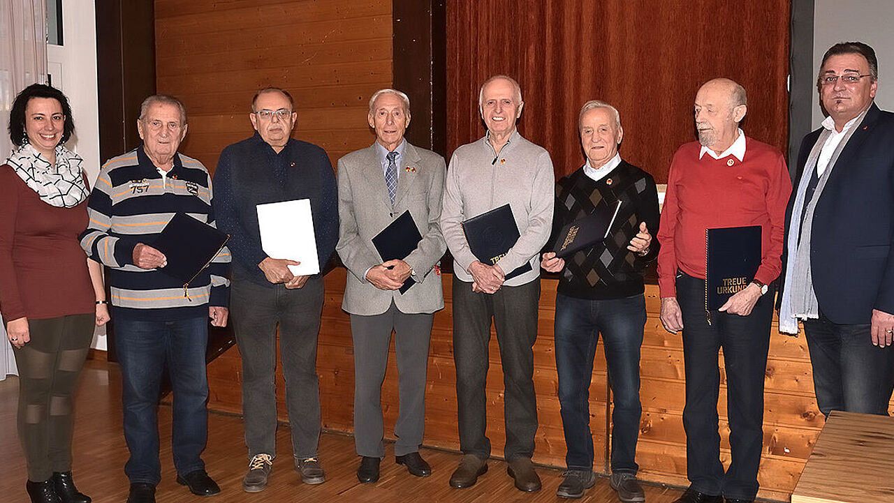 Für ihre langjährige Mitgliedschaft im DBwV erhielten Oberstleutnant a.D. Klaus Kowalski (25 Jahre), Oberst a.D. Kurt Sarmann sowie Stabsfeldwebel a.D. Clemens Piechota (50 Jahre) und Oberst a.D. Werner Haase sowie die Hauptleute a.D. Georg Merl und Heinz Räth (60 Jahre) Urkunden und Treuenadeln des Verbands.
