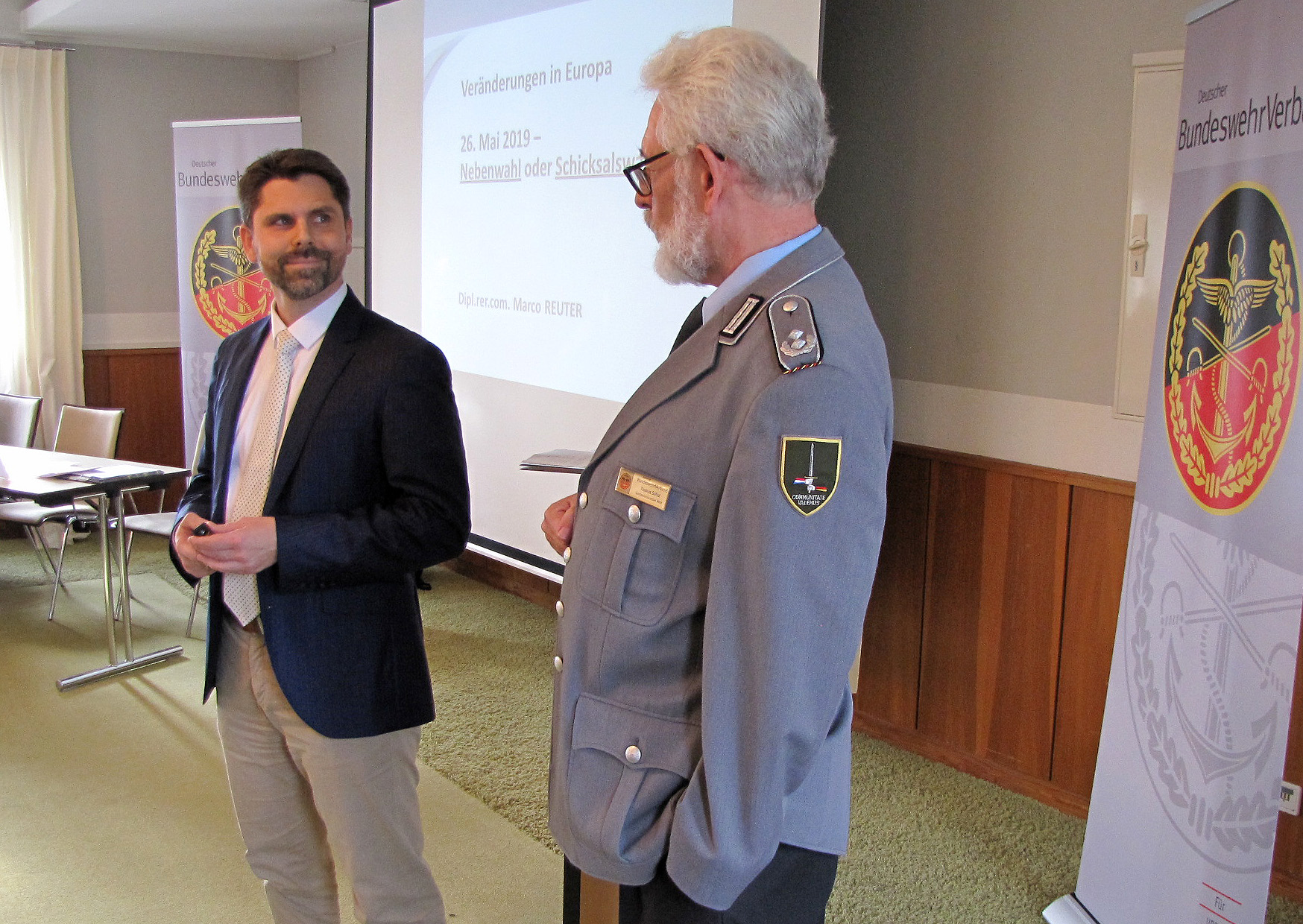 Ist die Wahl zum 9. Europäischen Parlament am 26. Mai 2019 eine Nebenwahl oder Schicksalswahl? Diese Frage beleuchtete Marco Reuter in einem lebendigen Vortrag und gab Einblicke aus der Sicht eines Büroleiters im Europäischen Parlament. Anhand von sieben Thesen zum - in den Medien vorherrschenden - Begriff der Schicksalswahl zeigte er auf, wie sich die grundsätzliche Ausrichtung der Europapolitik ändern könnte und resümierte: Die Europawahl sei eine paradoxe Schicksalswahl, die eine hohe Wahlbeteiligung verdiene. „Vieles davon habe ich nicht gewusst!" - so das feedback einiger Teilnehmer.
