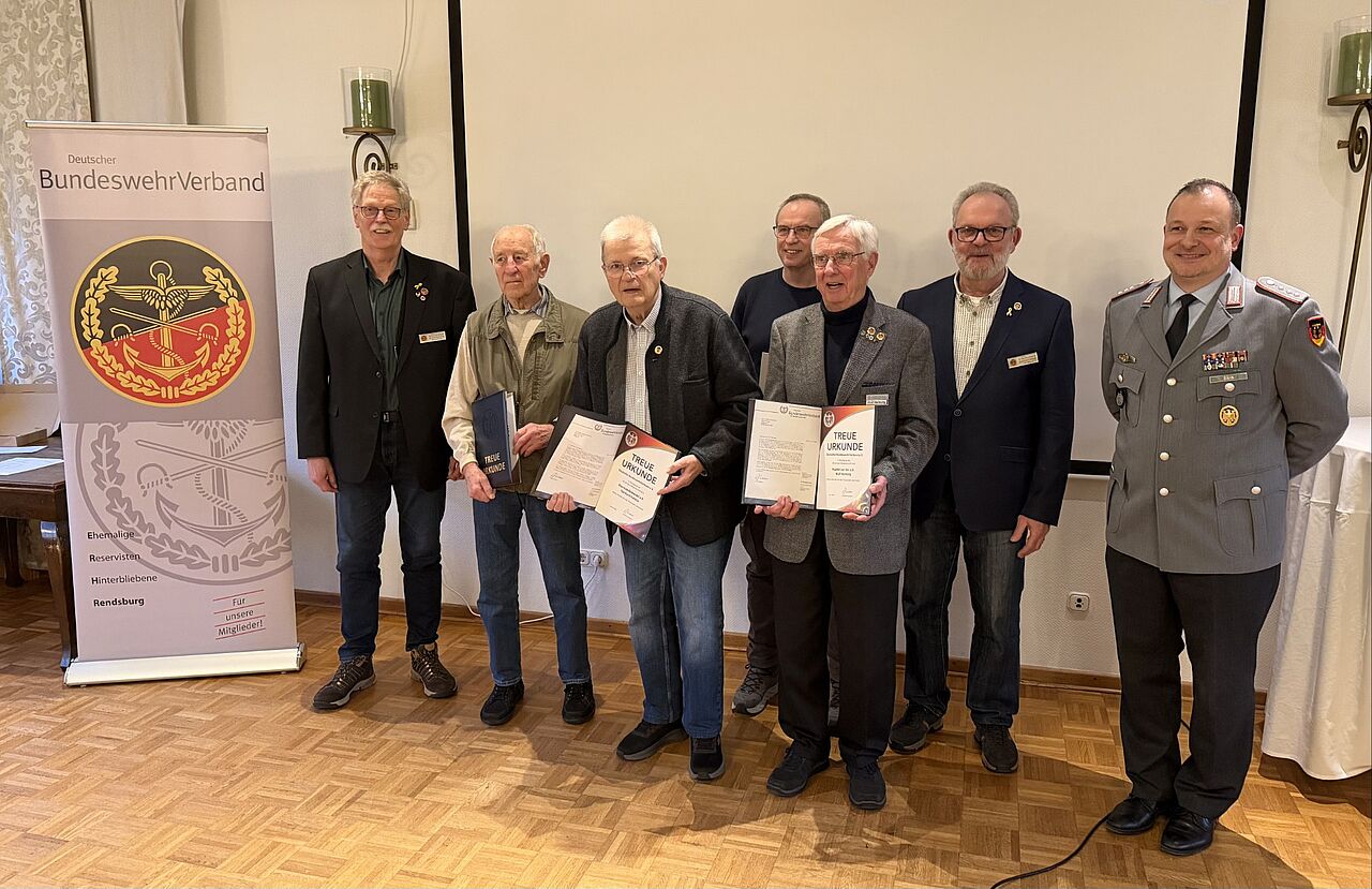 Im Rahmen der Veranstaltung ehrte der Kameradschaftsvorsitzende, Hauptmann a. D. Joachim Cieluch, zudem Kapitän zur See a. D. Wulf Hornung für seine 65-jährige Mitgliedschaft im Deutschen Bundeswehrverband. Als erster Rendsburger hielt er hierfür eine Urkunde und die dazugehörige Anstecknadel.