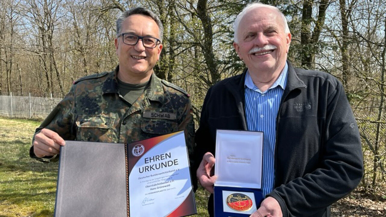 Die Bundeswehr sucht und findet Vorbilder in den Reihen ihrer aktiven und ehemaligen Soldatinnen, Soldaten und Zivilbeschäftigten. Eines dieser Vorbilder ist zweifelsfrei Oberstabsfeldwebel a.D. Hans Grünewald. In seiner langjährigen, ehrenamtlichen Tätigkeit im Deutschen BundeswehrVerband (DBwV) gestaltete er als Vorsitzender der Kameradschaft Ehemalige, Reservisten und Hinterbliebene in Mayen, Andernach und Mendig deren Gemeinschaft sowie das Zusammenwirken mit aktiven Soldaten und der regionalen Bevölkerung. In Landes- und Bundesversammlungen gab Grünewald der Eifelregion im DBwV eine starke Stimme und setzte sich nachhaltig für Modernisierungen und Fortschritt ein. In der Mayener Kaserne wird er allseits als erfahrener Wissensträger geschätzt und in der Truppe wertschätzend als "graue Eminenz" bezeichnet. Mit der Vorstandswahl im April endeten nunmehr 18 Jahre wertvolles Engagement als Kameradschaftsvorsitzender, welches anerkennend vom Bezirksvorsitzenden, Oberstleutnant Michael Schwab, mit der zweithöchsten Auszeichnung, der Verbandsplakette, gewürdigt wurde. „Wir wünschen Oberstabsfeldwebel a.D. Grünewald für seinen verdienten Ruhestand, den er nun im Alter von 71 Lebensjahren antritt, alles Gute und vor allem Gesundheit“, so StOKa Vorsitzender Oberstleutnant Dirk Drews. Zugleich wünschte Drews Grünewalds Nachfolger, Stabsfeldwebel a.D. Werner Wulff, viel Freude und Soldatenglück für die Ausübung des wichtigen Amtes als ERH Vorsitzender und sicherte ihm kameradschaftliche Unterstützung zu.