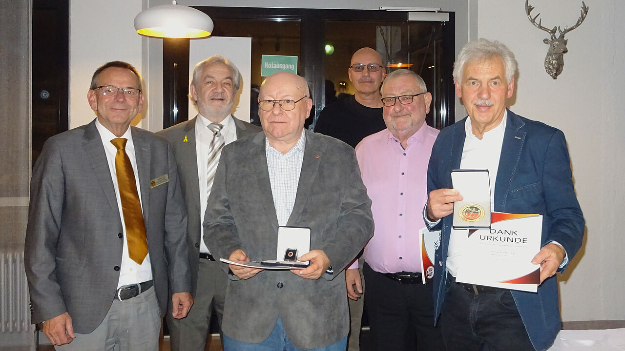 Bei der Jahresfeier der Kameradschaft ERH Zollernalb in der TSV-Stube in Meßstetten bedankten sich Bezirksvorsitzender Oberstabsfeldwebel a.D. Harald Lott und KERH-Vorsitzender Stabsfeldwebel a.D. Hendrik Rohm bei Mitgliedern der Kameradschaft für ihren außergewöhnlichen ehrenamtlichen Einsatz in verschiedenen Mandaten des BundeswehrVerbandes.