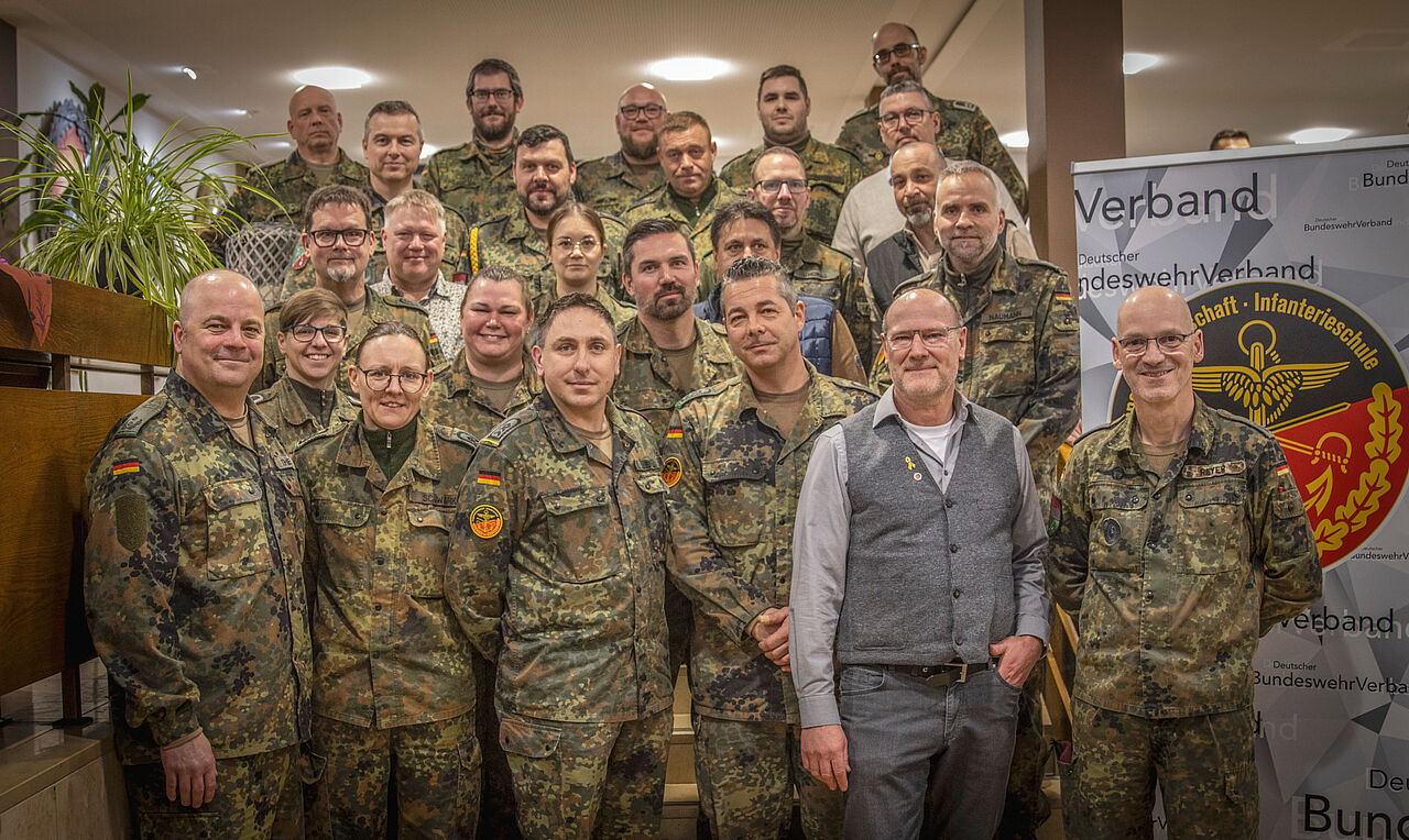 Bereits zur Begrüßung zeigte sich Hauptmann Steffen Naumann, bisheriger Vorsitzender der Truppenkameradschaft, „überwältigt davon, wie viele heute gekommen sind“. Unter den Gästen waren unter anderem der stellvertretende Kommandeur der Infanterieschule, Oberst Andreas Reyer, der neue Chef des Stabes, Oberstleutnant Sebastian Klima, sowie der Vorsitzende Heer im Bundesvorstand, Oberstleutnant Robert Thiele, und dessen Stellvertreterin, Stabsfeldwebel Katja Schwark. Die starke Präsenz machte deutlich: Der Verband ist kein Randthema.