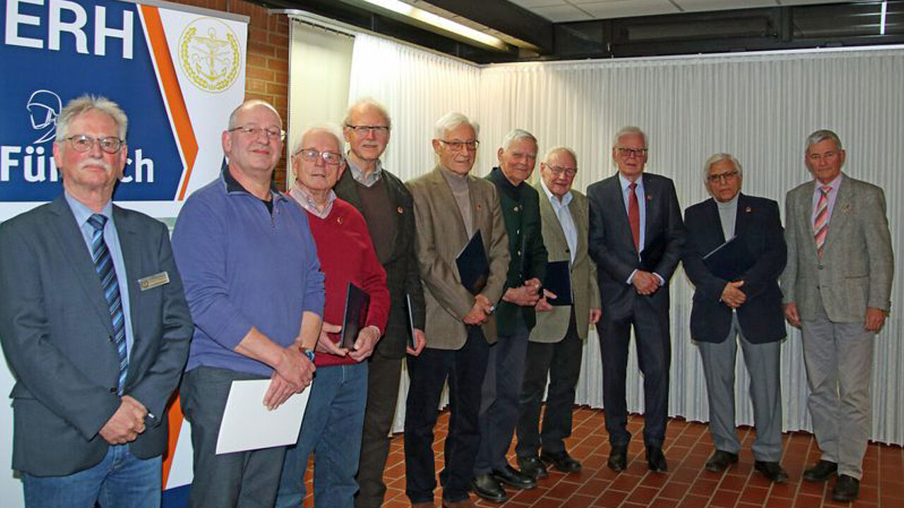Im Anschluss daran ehrte Timm, gemeinsam mit seinem Stellvertreter, Stabsfeldwebel a.D. Andreas Priesemann, acht Kameraden mit Treueurkunden und -nadeln: Gefreiter d.R. Thilo Bauer (40 Jahre) sowie Oberstleutnant d.R. Horst Bunge und Oberstleutnant a.D. Erich Marx (beide 50 Jahre). Oberst a.D. Frank Schlieter, die Oberstleutnante a.D. Peter Jaax und Karl-Heinz Krone, Oberstabsfeldwebel a.D. Dieter Rönpagel und Stabsfeldwebel a.D. Wolf-Dieter Schmidt wurden für 60 Jahre ausgezeichnet.