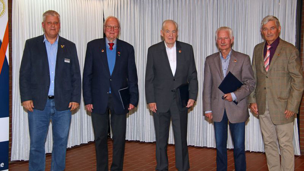 Bei der Mitgliederversammlung der KERH Hannover (v.l.n.r.): Hauptmann a.D. Ingo Zergiebel, Oberstleutnant a.D. Reinhold Hufnagl, Oberstleutnant a.D. Horst Quante, Oberstleutnant a.D. Bodo Raschdorf und Oberst a.D. OrtwinTimm. Foto: LV Nord