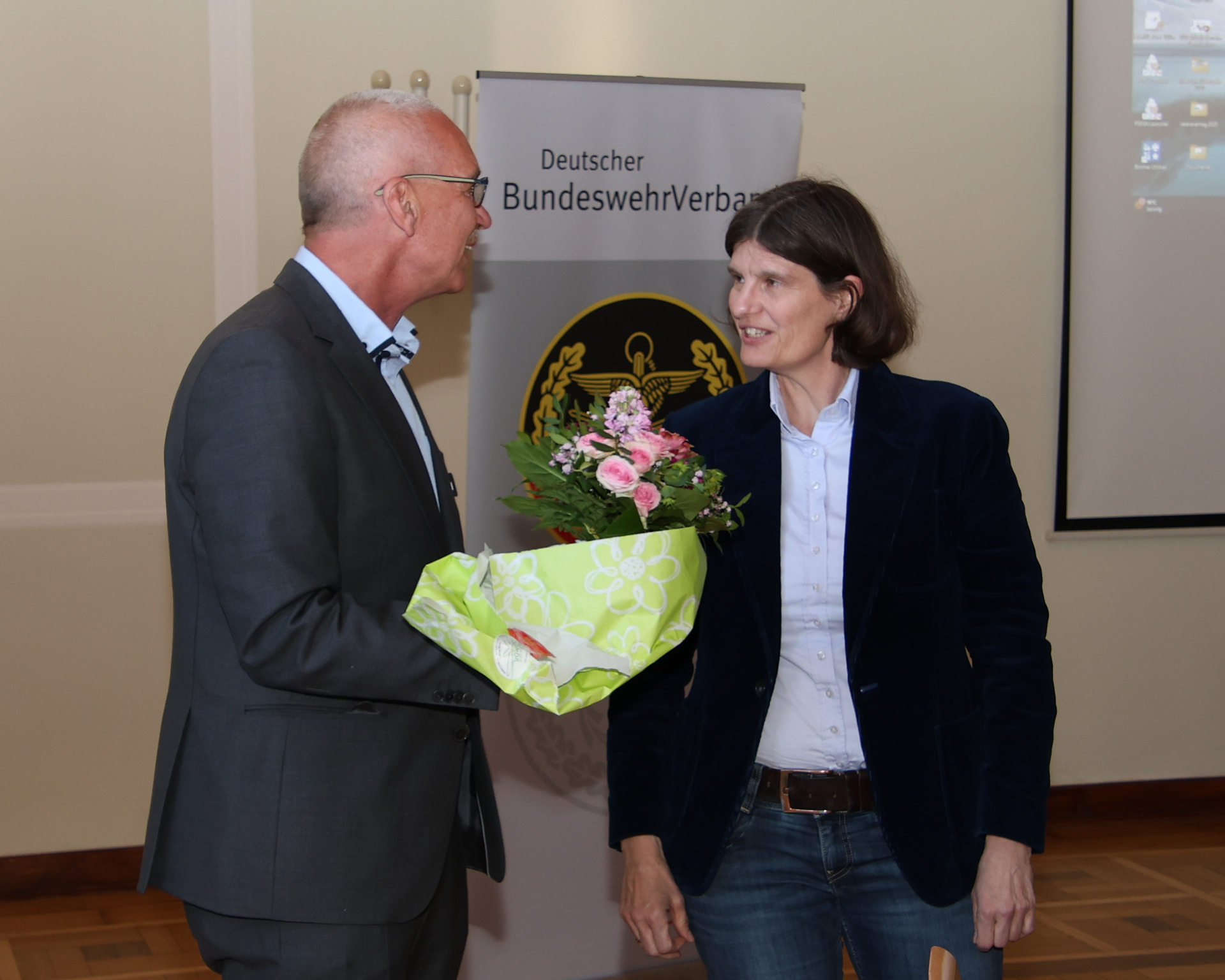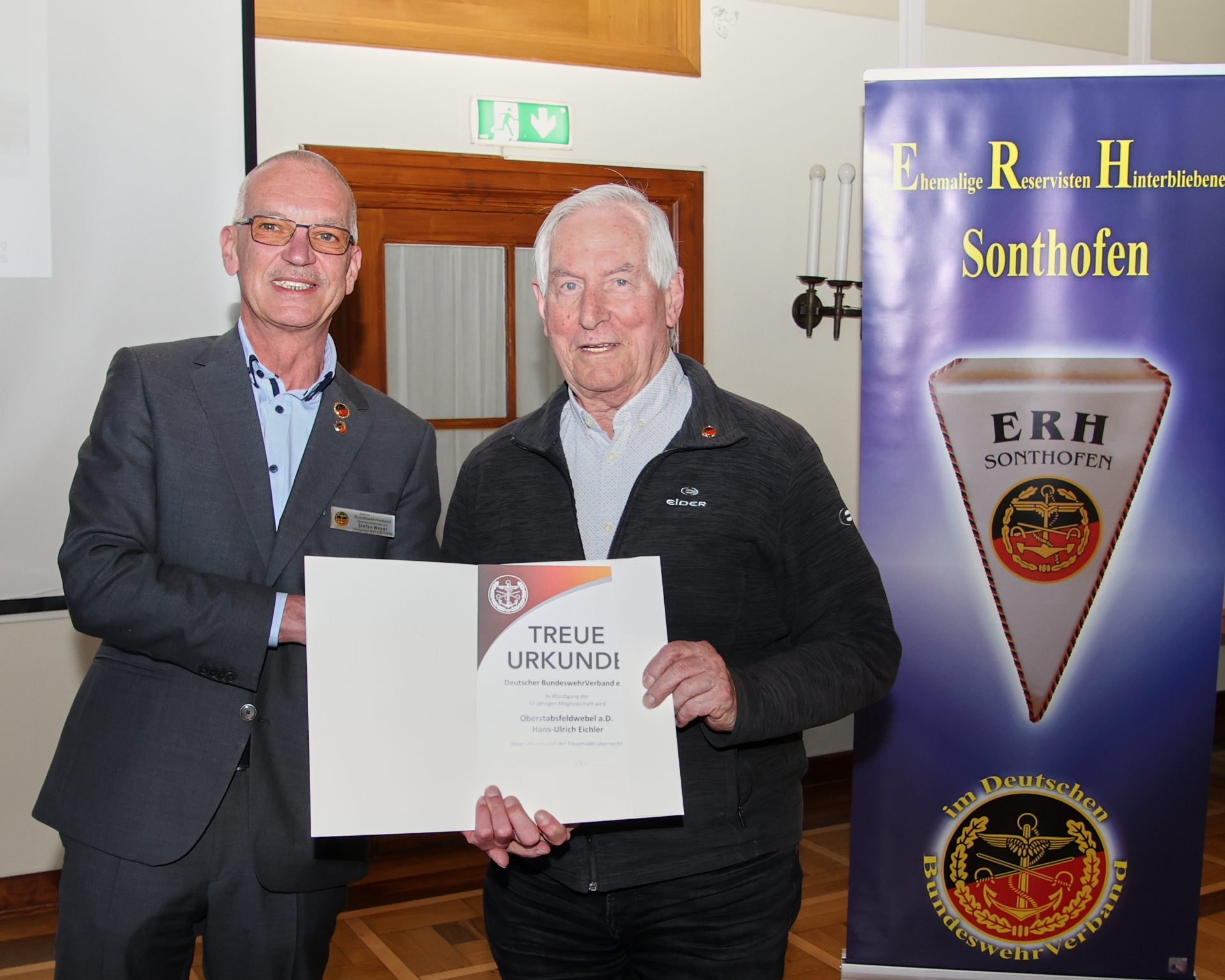 Im Rahmen der Versammlung gratulierte KERH-Vorsitzende Oberstabsfeldwebel a.D. Stefan Weyer Oberstabsfeldwebel a.D. Hans‑Ulrich Eichler herzlich zu dessen 50‑jähriger Mitgliedschaft im Deutschen BundeswehrVerband.