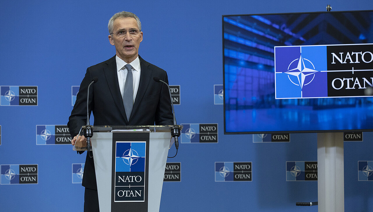 Im Vorfeld des Außenministertreffens gab Nato-Generalsekretär Jens Stoltenberg auf einer Pressekonferenz die Schwerpunkte der Konferenz bekannt. Foto: Nato