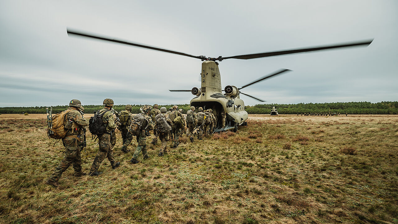 Soldaten der Division Schnelle Kräfte besteigen einen US-Hubschrauber bei der Übung Green Griffin im Oktober 2021. Die NATO hat die „Notice-to-Move“-Frist angesichts der angespannten Lage jetzt verkürzt. Foto: Bundeswehr/Jana Neumann
