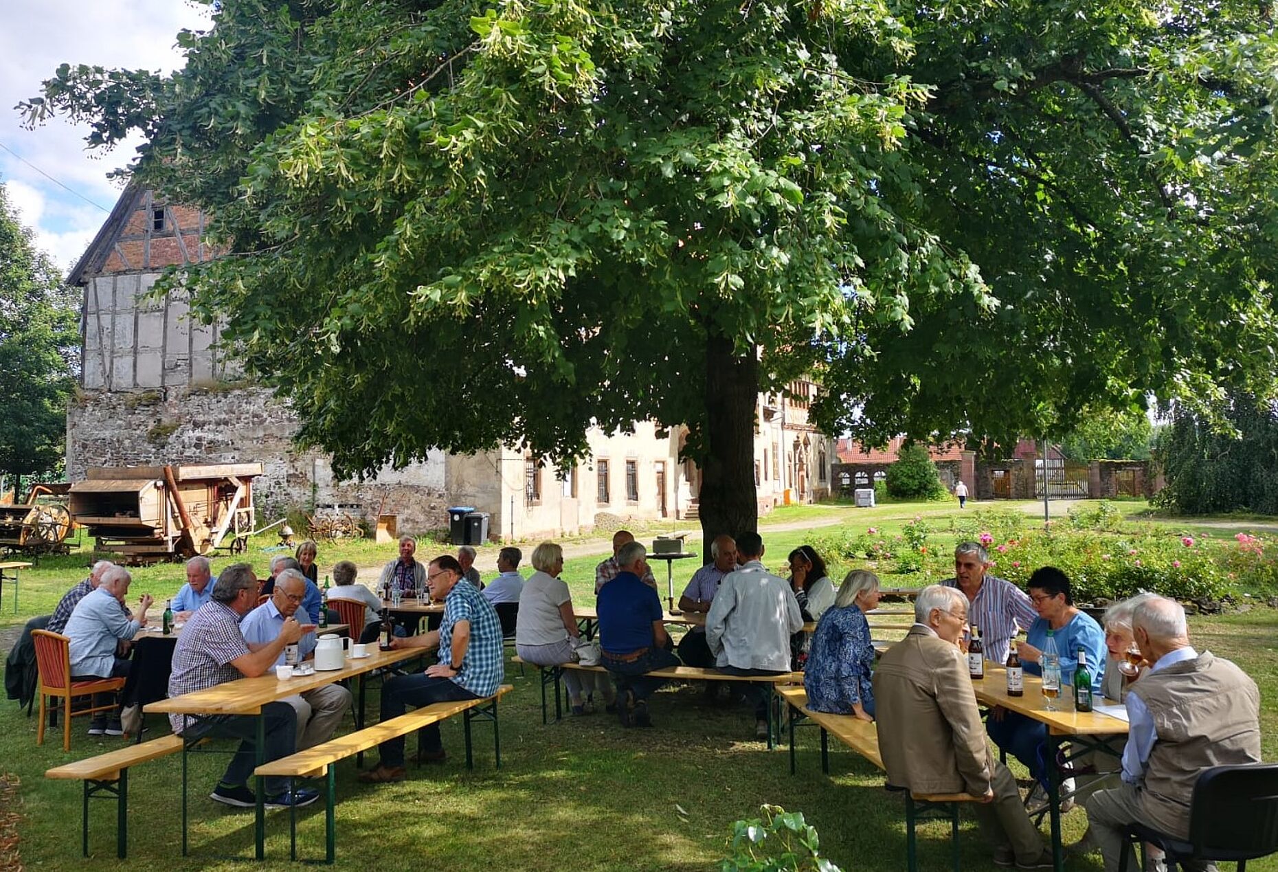 Die bereits seit vielen Jahren bestehende Tradition, sich im August eines jeden Jahres zu einem gemütlichen Beisammensein zu treffen, führte die KERH Nordthüringen auch in diesem Jahr fort. Neu war allerdings, dass nach der Fusion mit der KERH Leienfelde/Worbis auch zahlreiche Teilnehmer erstmals der Einladung des Vorsitzenden Hauptmann a. D. Hans-Jürgen Hoffmann gefolgt waren. Schönstes Sommerwetter bot dabei einen optimalen Rahmen, bei Kaffee und Kuchen sowie dem ein oder anderen kühlen Getränk miteinander ins Gespräch zu kommen und sich dabei persönlich kennen zu lernen.