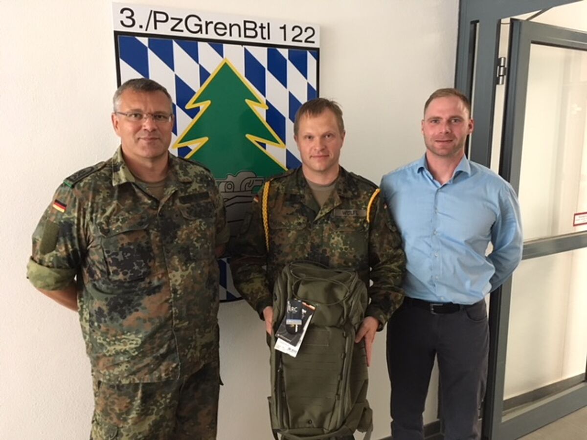 Große Überraschung bei Oberstabsfeldwebel Jürgen Wölfl, Kompaniefeldwebel der 3./Panzergrenadierbataillon 122, als er den Preis der Couponaktion April 2018 für die Mitgliederwerbung aus den Händen von Stabsfeldwebel Norbert Veitenhansl, Vorsitzender der selbständigen TruKa Oberviechtach, und von Daniel Grabmann, Mitarbeiter Außendienst im Landesverband, entgegennahm. „Ich überzeuge seit Jahren Soldaten von der Mitgliedschaft im DBwV. Erstmalig habe ich etwas gewonnen!“, freute er sich. Wölfl setzt sich darüber hinaus als Beisitzer der TruKa für die Interessen seiner Soldaten ein.