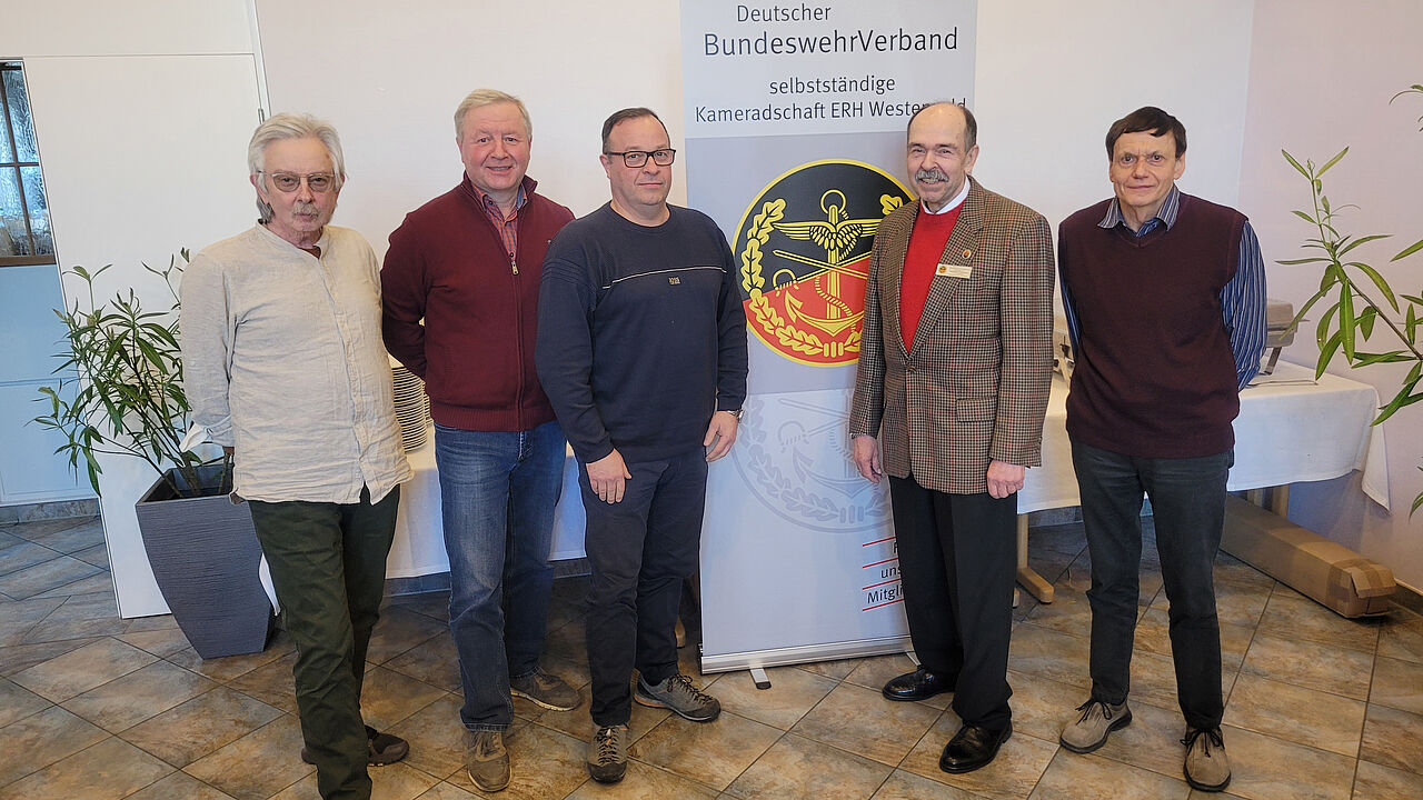 Mit frischem Wind in die nächste Amtsperiode: OStFw d.R. Binder, Oberstlt a.D. Lippold, OStFw a.D. Zeutzheim, Hptm a.D. Chmieleck, Oberstlt a.D. Kuckuck (v.l). Foto: Michael Schwab