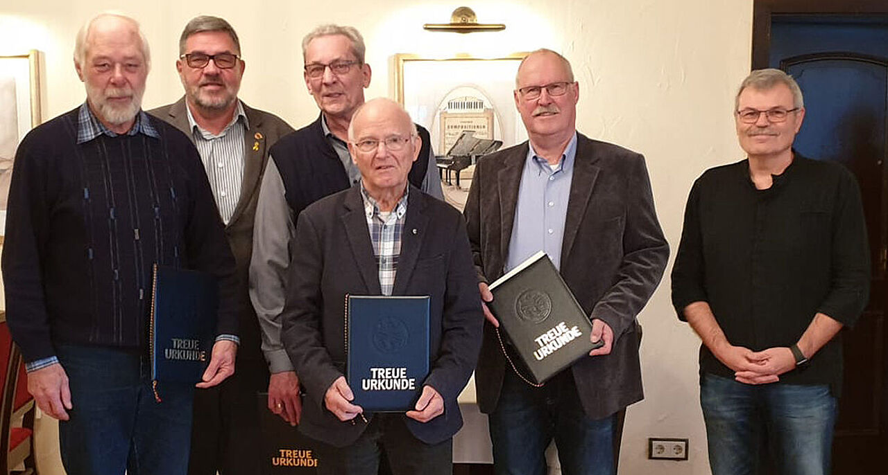 Mit Urkunden: Die langjährigen DBwV-Mitglieder in Rheine. Foto: Heide Wendland