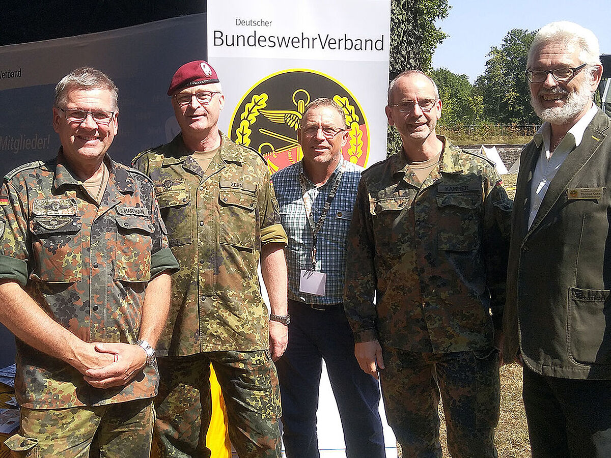 Generalinspekteur besuchte DBwV-Infostand: General Eberhard Zorn (2.v.l) im Gespräch mit dem Landesvorsitzendem Thomas Sohst und saarländischen Mandatsträgern Foto: Stabsfeldwebel a.D. Werner Döring