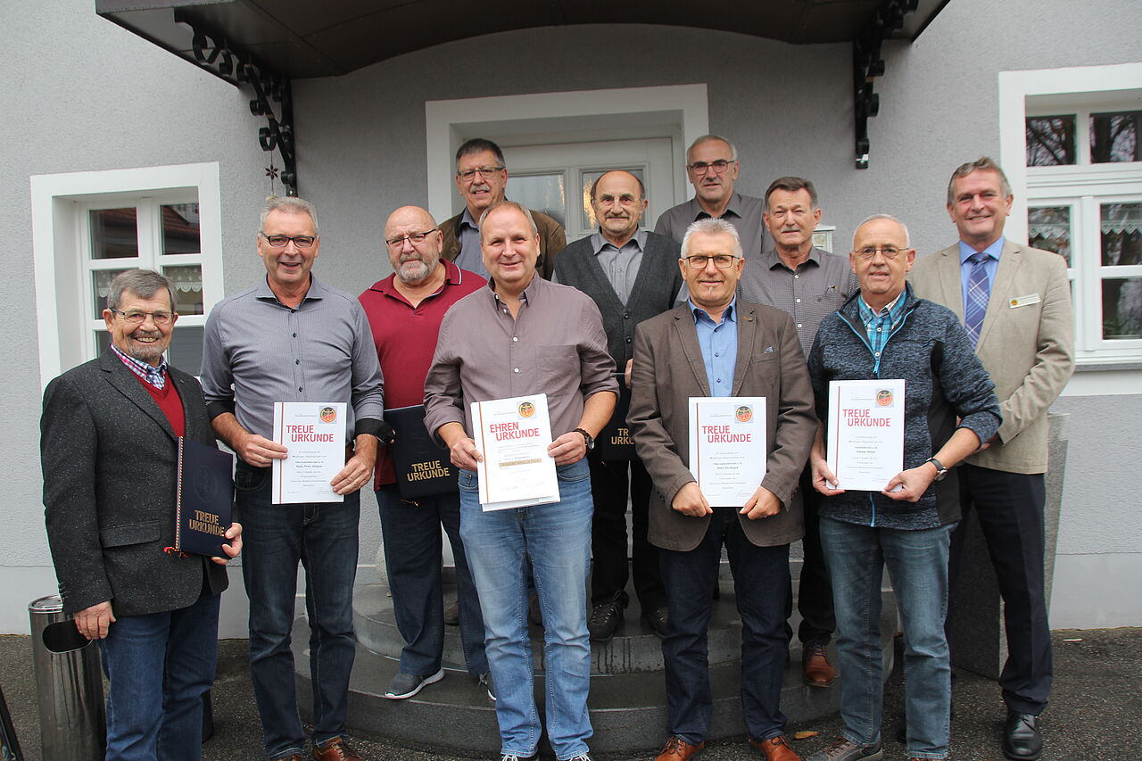 Die geehrten Mitglieder der Kameradschaft mit Oberstabsfeldwebel a.D. Bernhard Hauber (r.) Foto: DBwV