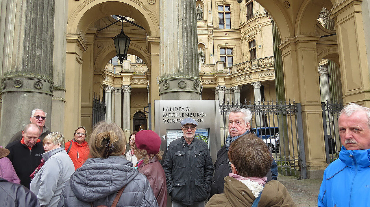 Die Kameradschaften der Ehemaligen, Reservisten und Hinterbliebenen (KERH) aus Hagenow, Lübz und Schwerin, haben im März 2019 gemeinsam das Schweriner Schloss besucht, den Sitz des Landtages von Mecklenburg-Vorpommern. Die Kameradschaft aus Hagenow mit ihrem Vorsitzenden Stabsfeldwebel a.D. Wolfgang Gottschling hatte zusammen mit dem Standortbeauftragten Hagenow/Schwerin, Oberstabsfeldwebel a.D. Walter Trump, diesen Besuch organisiert. Die über 30 Teilnehmer aus den drei Kameradschaften erlebten einen Tag mit vielen Eindrücken, der am Schweriner Schloss mit einer Stadtführung des Kameraden Stabsfeldwebel a.D. Uwe Poblenz begann. Er führte die Gäste zu den schönsten Flecken der alten Garnisonsstadt und vermittelte Wissenswertes zur Landeshauptstadt, bevor es zur Führung durch den Landtag am Schweriner See ging. Das Schweriner Schloss gilt als eines der bedeutendsten Baudenkmäler des Historismus in Europa.