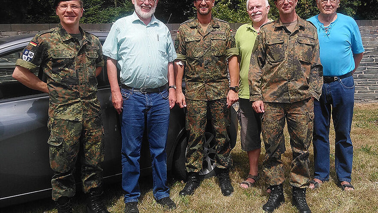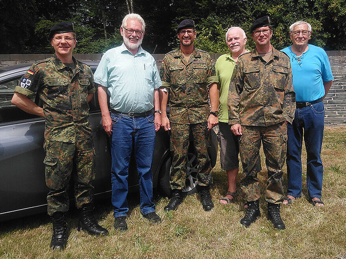 Mandatsträger des Standorts Mayen begrüßten den Landesvorsitzenden Thomas Sohst (2.v.l.) am Kasernentor auf seiner Sommerreise. Foto: DBwV/ LV West