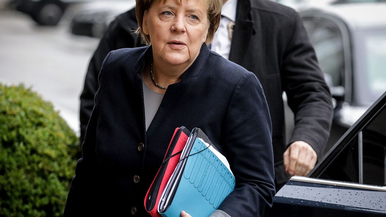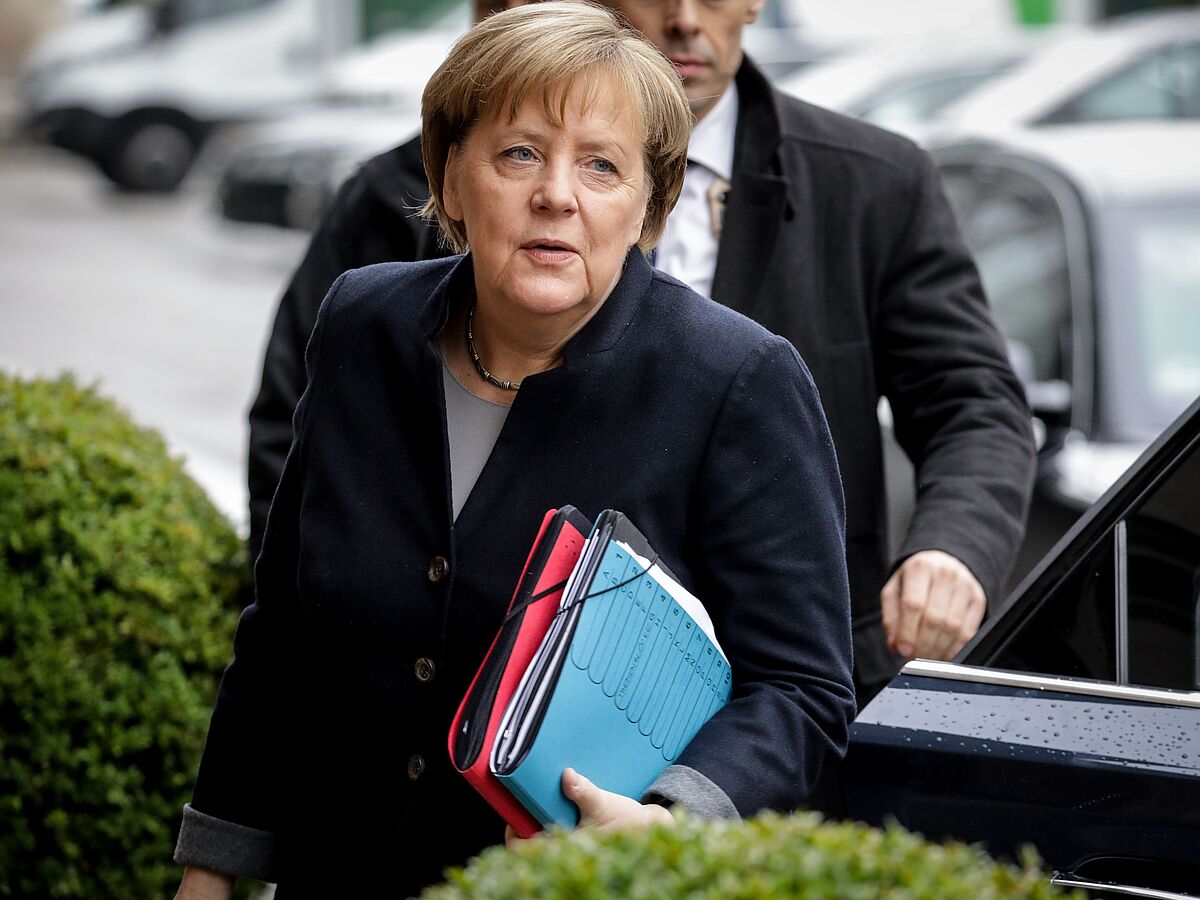 Bundeskanzlerin Angela Merkel auf dem Weg zu den Gesprächen. Die CDU-Chefin ist noch immer optimistisch Foto: dpa