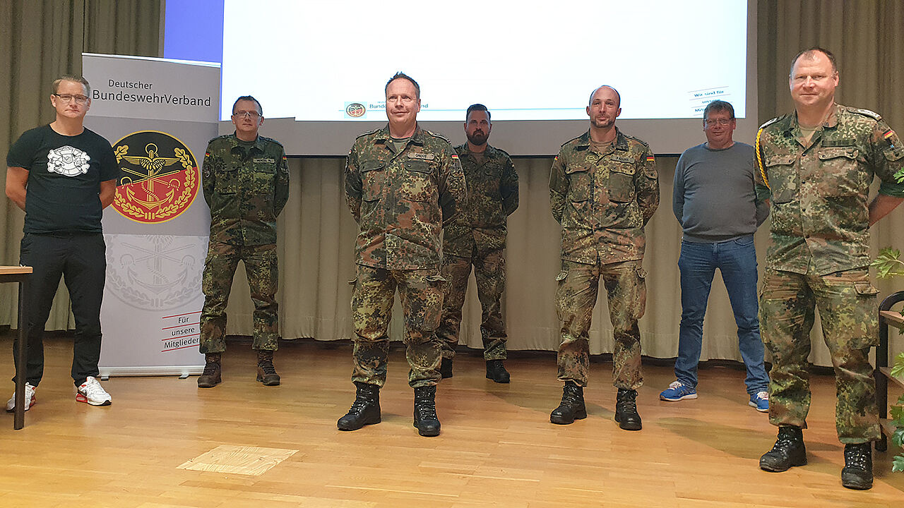 Vorsitzender Stabsfeldwebel Ralf Onody (3.v.l.) mit seinem neuen Vorstand. Foto: DBwV/Franz Jung