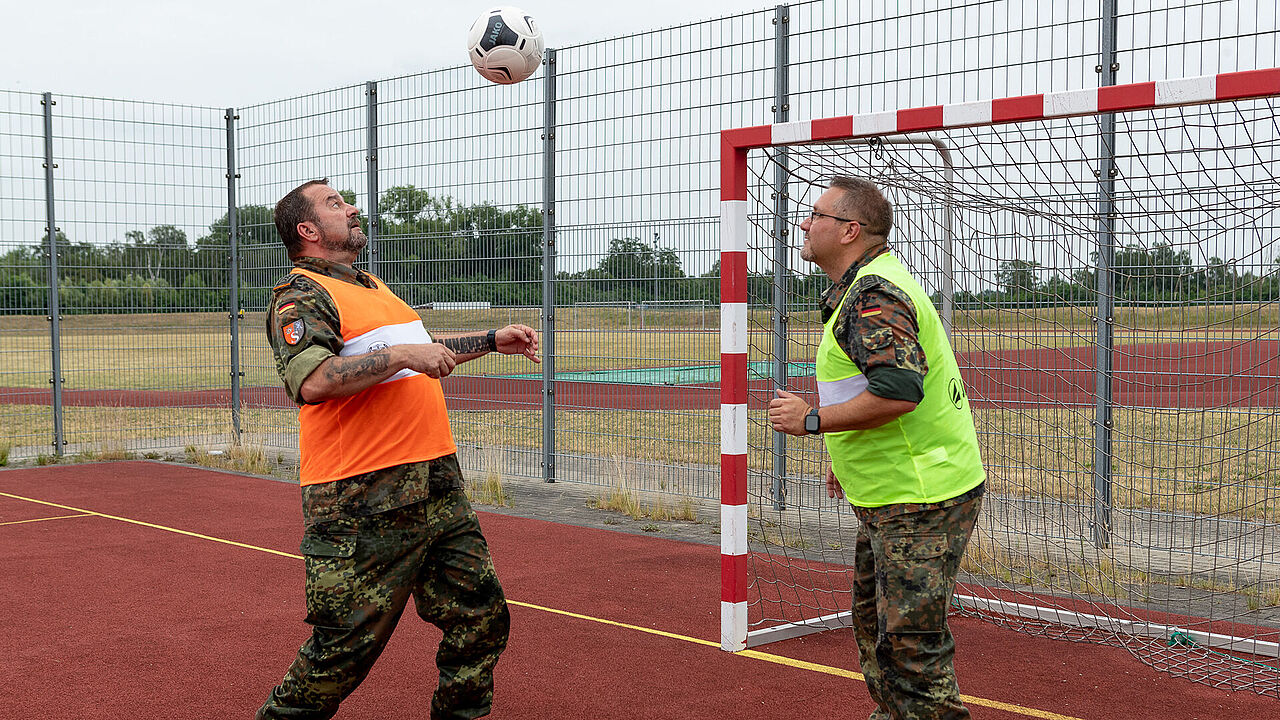 Beim Kick in Hannover: Der Kameradschaftsvorsitzende Stabsfeldwebel René Giesa (l.) mit Stabsfeldwebel Christian Czarnecki, Leiter der Fußball AG. Foto: LV Nord