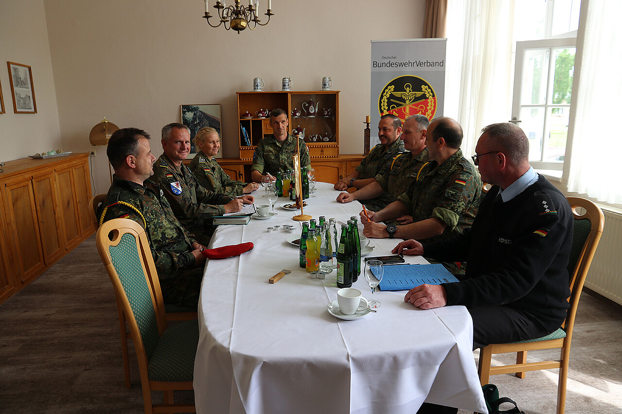 Während Uwe Köpsel mit den Kommandeuren/Kompaniechefs und den Kompaniefeldwebeln vor allem über sicherheitspolitische Themen der Landes-/Bündnisverteidigung diskutierte, informierte Michael Stechert über Veränderungen in der Organisationsweisung nach der 20. Hauptversammlung des Verbandes und gab er viele Anregungen für die praktische Arbeit in den Kameradschaften.Weitere Themen waren die zunehmende Verwaltungstätigkeit auf der Grundlage der zivilrechtlichen Vorschriften, die Probleme im Unterkunftsbereich sowie Infrastruktur. Auch die steigenden Mietpreise am Standort wurden angesprochen. Für die Vertrauenspersonen und Personalratsmitglieder am Standort waren die Hinweise zur neuen Zentralen Dienstvorschrift A-1472/1 (Beteiligung durch Vertrauenspersonen) und die des Gesamtvertrauenspersonenausschusses beim Bundesministerium der Verteidigung wichtig.