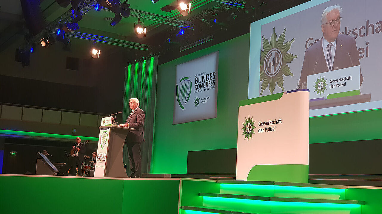Bundespräsident Frank-Walter Steinmeier beim Bundeskongress der GdP. Foto: DBwV/Steinmetz