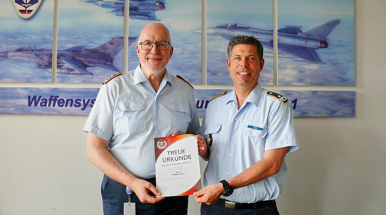 Der stellvertretende Kommandeur des Waffensystemunterstützungszentrum 1, Oberst Ralf Kleindienst, ist seit 40 Jahren treues Mitglied im Deutschen BundeswehrVerband.