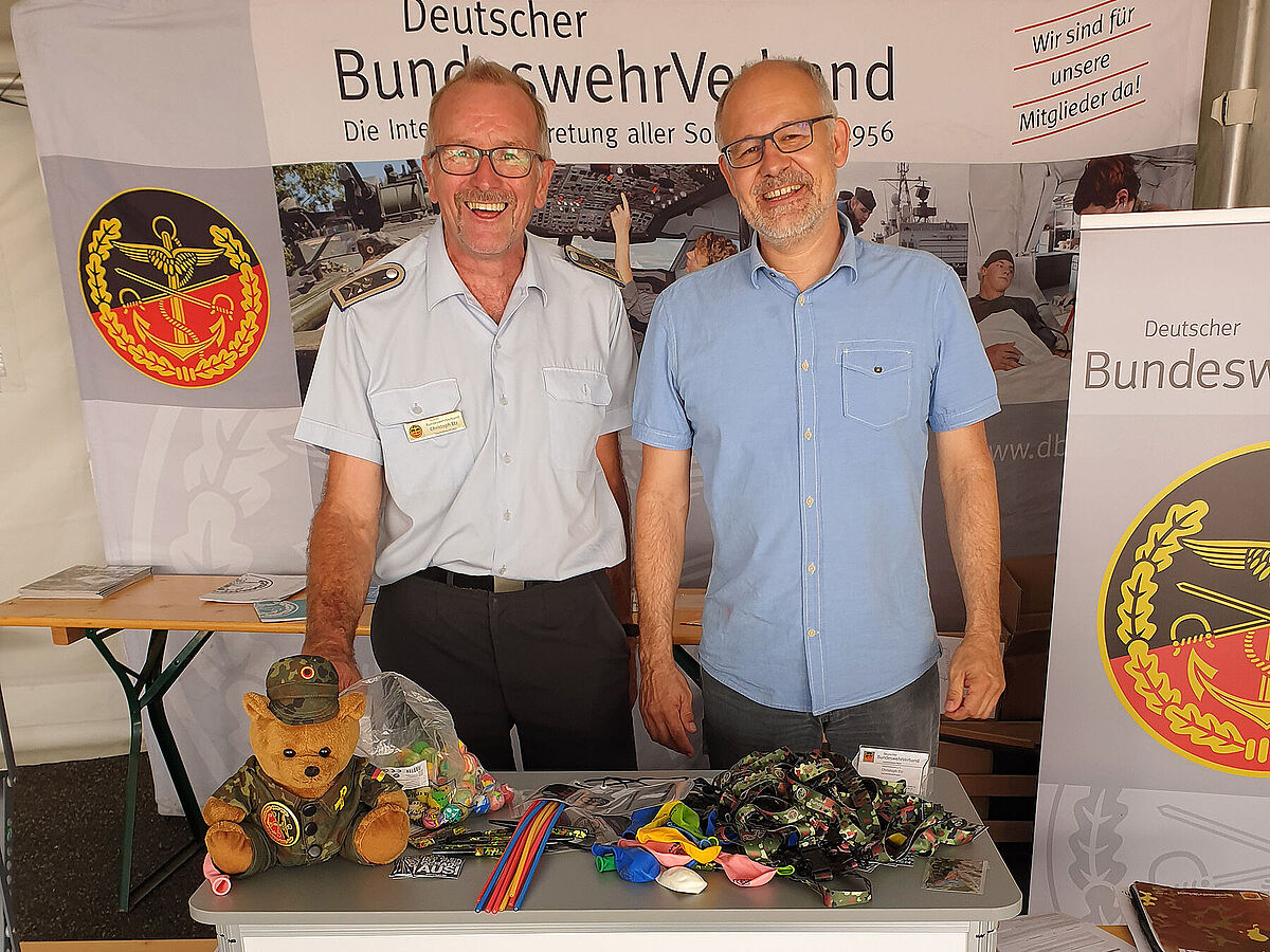 Neben dem Glücksrad, welches fleißig zugunsten der „Soldaten- und Veteranenstiftung“ gedreht wurde, konnte das Team um Stabsfeldwebel d.R. Christoph Etz und dem Vorsitzenden Stabsfeldwebel Randy Albrecht bei bestem Sommerwetter mit aktuellen Informationen aufwarten. Mitglieder der Truppenkameradschaft konnten sich darüber hinaus über ein nützliches Präsent freuen.